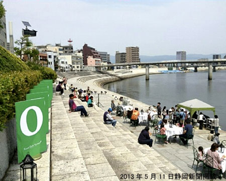 沼津市中心街を流れる狩野川の河川敷にオープンカフェが登場しました。沼津リバーサイドホテルが金曜の午後5~9時、土・日曜の正午~午後9時、狩野川下流の親水護岸堤防でオープンカフェを営業し、ハンバーガーや飲み物を提供します。 開催日 : 2013年6月末までの金・土・日開催時間 : 金曜日/17:00~21:00 土・日曜日/12:00~21:00お問い合わせ先 : レストランKEYAKI (沼津リバーサイドホテル) TEL:055-952-2785会場 : 狩野川河川敷 右岸沿い -沼津市