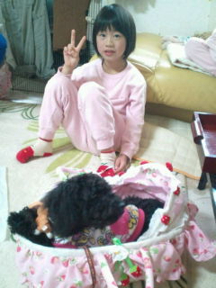 ま、やっと自分の事を触ってくれた姪っ子達に安心したのか、人形用のベッドを占領してまいやがった!