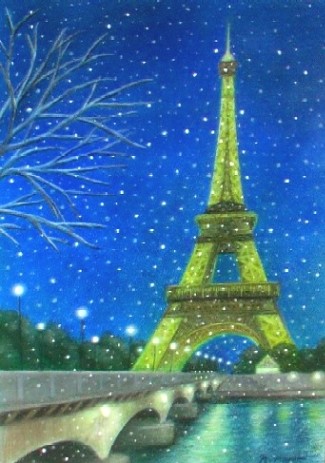 B4サイズのスケッチブック使用、題名は『エッフェル塔に降る雪』です。