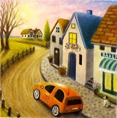 ↑の作品は、パンを買いに車で早朝の街に出ている設定で描きました。