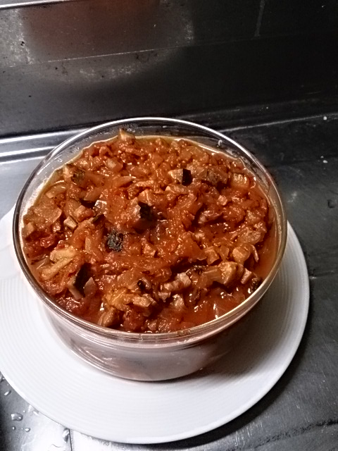 乾物イタリアンの料理レシピレシピブログで大量の乾物をいただいたので、それをつかったイタリアンメニュー開発中です。今日は基本のトマトソースとそれをつかったパスタ。<乾物トマトソース(パスタなら5人分)>トマト缶・・・1缶干し椎茸・・・22g切り干し大根・・・12g高野豆腐・・・12gセロリ・・・1本玉ねぎ・・・1個鰹節・・・9g(パック2袋)イタリアンハーブミックスビーフコンソメ乾物はすべて水でもどし、細かくみじん切りにする。セロリ、タマネギもみじん切りフライパンにオリーブオイルをひいて、全ての具材を炒める。しんなりしできたら、塩、ハーブ、手でもみほぐした鰹節を加えさらに炒めて、干し椎茸戻し汁、トマトを加えて煮る。沸騰したら、コンソメを加え、さらに20分弱火で煮てできあがり。ここで一晩寝かせます。糖分はくわえていないのに、やさしい甘みのあるトマトソースになりました。<乾物トマトパスタ一人分>上記のトマトソースの1/5パスタ・・・80g粉唐辛子・・・小1青のり・・・少々ソースに粉唐辛子とパスタゆで汁をくわえて、温める。そこにゆであげたパスタを加え絡めてできあがり。お皿にもりつけ、青のりを彩りを。<乾物トマトソースで卵の巣ごもり一人分>卵・・・1個乾物トマトソース・・・大さじ4ココットにソースをいれ、中央をくぼませ、卵を割り入れて、オーブンまたは、電子レンジで卵黄が半熟になるまで加熱する。朝ご飯の一品に最高。