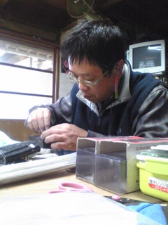 今日は工房銀のスタッフを紹介します。と、いっても工房銀のスタッフは講師と私のふたり・・・ということは私の自己紹介なのです。工房銀のメール&ブログ担当でアシスタントの奥さんです。宮岡篤子 みやおかあつこプロフィールや講師紹介ページにもあるとおり、わたくしはYOSITOさんの奥さんで車椅子なのです。教室では、銀粘土の説明や追加料金などの計算をしてます。計算は苦手なのですが・・・。メールやブログ担当のほか、パーツなどの仕入れも私がしていますよ。もちろんYOSITOさんと相談の上ですが。「こんなデザインで作りたいんですが」とか「こんなの作りたいけどパーツありますか」とか「いくらぐらいかかりますか」とかメールで気軽にきいてくださいね。自称七宝焼作家で、最新作は赤富士です。
