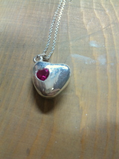 昨日の体験のお客様は、ふた組3名様。ひと組目は男性、銀粘土の体験。結婚式に、新婦と新婦の娘さんにプレゼントするペンダントを新郎が手作り。ぷっくりハートに、ハートの形の石を入れてあります。まるみが可愛いですね。田舎でのんびり手作り体験工房銀のシルバーアクセサリー体験教室
