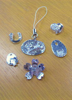 工房銀の体験教室は、材料の量によって料金設定しています。おひとり5g3500円アートクレイシルバー650の5gをお渡しして作ってもらいます。5gあったら何が作れるの?こんなふうに薄く延ばして型で抜いたら、2個ぐらい。この立体的なモールドなら、1個。だけど少しあまります(^_^)vあまりは薄くしてイニシャルを入れたり。(このモールドを使うときは別売りの金具が必要です。差し丸カン¥157)細めのリングなら5gでもできます。講師自宅の工房で体験できます。8人くらいは座れる大きな作業台もあります。通信講座よりやっぱり直接指導がおすすめ。工房では、とんぼ玉体験も出来ますよ。平日しか休めない方、仕事の帰りなど夜でも、予約さえいただければ、お好きな時間に来ていただけますよ。出来るだけ、前日までにご予約くださいね。当日のご連絡も多いのですが、ご希望に添えない場合もあります。イベントでは対応できない、講師自宅の工房ならではのことも・・・あるかも 岡山県赤磐市可真下603Tel090-9468-1627 bbフォン050-1246-7573電話でご予約ください日曜、祝日、夜もOK!お気軽にお問合せください。メールでご予約メールフォームはこちらhttp://www.nexyzbb.ne.jp/~koubougin/jitaku.htmlfzx01364@nifty.com工房銀 赤磐教室