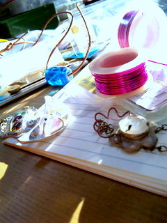 細胞シリーズと名付けています。作品展にも出していたブローチとペンダントです。ワイヤーのくるくるがポイント! 資格をとって、作家になる。インストラクター講座