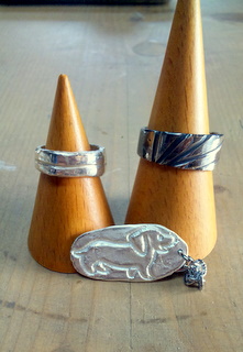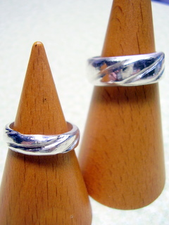 昨日の体験のお客様は、ひと組2名様。他のブログで仲良くしてくださってる男女お二人。カップルではありませんが、お二人でリングを製作。男性の方は、粘土らしさを生かした自然なデザイン。仕上げもあまり磨かずにナチュラルテイストなリングが出来上がりました。リクエストにより写真はセピアカラーに加工してます。女性の方は、面を作っていく感じに、キラキラ光ります。仕上げもしっかり磨いてぴかぴかになりました。リングが一番人気です。シルバーアクセサリー手作り体験教室 工房銀