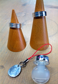 昨日の体験のお客様は、ひと組2名様。静かでホンワカしたカップルさん。リングとキーホルダーができました。リングが一番人気です。シルバーアクセサリー手作り体験教室 工房銀