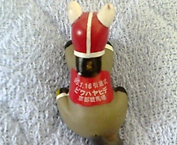 朝目覚めてベットから降りるとバキッ!イタッ!!なんやねん!!!うわ~~~~~!!!!最悪や~、何か踏んだなと思って下をみると、引退式の時のビワハヤヒデのキーホルダーが足の下にあるではないか!すぐ拾い上げて見ると壊れてる~~~ショックです。結構、気に入ってたのでパソコンの机に掛けて置いたのに、たぶん布団があたって床に落ちたのでしょう。本当はこの首の所にキーホルダーが付けれるようになっていましたが、その部分は粉々になってしまいました。仕方がないので置物として使います。右側の耳も少し欠けてるやんか~!このビワハヤヒデは11年前に引退式の時に貰ったもので、ちょうど震災の前日だったので忘れることができません。 クソ~~~!なに踏んでんねん!! まだ言うかぁ~今日も1クリックご協力お願いします。