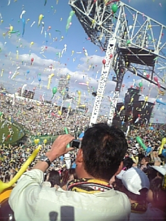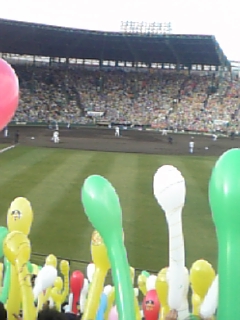 今日は4-1で勝ちましたこれが本当のタイガースの勝利のパターンですジャンが期待に応えてくれましたこれはライトの25段目から携帯で撮った画像ですしかも今日は投打に活躍でしたよいいぞ いいぞ エスティー打者での活躍は林、矢野、桧山です林のセンターより左のホームランは始めてじゃないですかねそして左へ打つのも流し打ちではなく、ボールをぶっ叩いていますね、本当に気持ちいいです矢野、桧山は、この2人らしいタイムリーでしたね走者での活躍は今岡誠です矢野のツーベースで1塁から一挙ホームインです私は、これで今日は声が潰れました回れ回れって言ってるのに今岡の足が前に進んでくれないんですよ参りましたでも良く走ってくれましたナイスラン 今岡そして最後はJFKが締めてくれました久保田が1点取られたのは球児にセーブを付けさせる為に取られた点だと私は思います久保田って、いい奴なんですよ今日は、こんな感じです明日も甲子園に勝ち試合を観に行って来ますお賽銭は、5割まで50円ですおわり