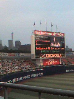 今日は4-6で負けました敗因は、全て福原でおまえは何しに出て来たんって感じでしたアホ~ 2軍行け~昨日も書いた通り、やっぱり信用出来ん奴でしたJFKの使い方なんですが、今日の場合は同点だったので、6,7回ジェフ、8,9回球児、10~12回久保田で行って欲しかったですそれに2日休んだ後で明日終われば4連休と楽出来るので、ここ無理してでもこの順番で行って欲しかったあとですね、今日は野球以外の敗因が1つあったんですそれは1アルで日ハム応援してたのが居たんですどうやらスコアボードの時計の短針貼り付けられる事が決定したようですそれが無理ならライトポールの上に立つでもいいですよ決行日は7月5日でよろしいでしょうかそれと僕は見てましたよ、元ちゃんが日ハムの選手に拍手してる姿を肉眼で確認してました今日は楽天ブログの仲間が4人ともバラバラに座ってたんですが、試合途中に全員一斉メールが送られて来て、それが面白くて笑ってしまいました横に座ってる全然知らん人が何笑ってるねんて顔してました今日の座席はライトの上の方だったので風が吹いて気持ち良かったです、しかも通路側だったので気を使う事もなく快適でした1つだけ難点があるとしたら、スコアボードが観難かった事です明日も甲子園行くんですが天気がムッチャ心配です明日、中止になると明後日になるんでしょうねその時はチケット取り易いと思うので、それでも行きますよ