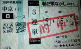 今日の競馬は少し勝ちでした、、、5-15-10で11830円でした、、、これ以外は安いのばかりで話になりません、、、リーチザクラウンと武豊、飛ばすだけ飛ばして直線止まってました、、、今日終わって、今年の回収率72%となり、明日大逆転狙って頑張ります、、、明日はプレミアムデーやしね・・・いよいよ今年ラストの有馬記念です、、、明日は4人で京都競馬場へ午後から行きます、、、最後はドカーンと勝ちたいものです、、、では、明日の4番勝負の予想です、、、有馬記念◎10番マツリダゴッホ 蛯名正義 7-1-1-0○13番ダイワスカーレット 安藤勝巳 0-1-0-0▲ 6番エアシェディ 後藤浩輝 1-3-1-4△ 9番メイショウサムソン 武豊 2-0-0-2★12番アサクサキングス 四位洋文 0-0-0-1☆ 8番スクリーンヒーロー デムーロ 0-0-1-1×11番ドリームジャーニー 池添謙一 2-0-1-1×14番アドマイヤモナーク 川田将雅 1-2-3-1上の数字は中山成績です、、、買い目馬連 10-6.8.9.11.12.13.14流し 6-9-13BOX3連単10⇒6.9.13⇒6.8.9.11.12.13.14FM2008ファイナルS◎16番ノットアローン 藤岡祐介○10番トウショウヴォイス 下原理▲ 9番フィールドベアー 秋山真一△ 6番ホッカイカンティ 石橋脩★ 4番オースミダイドウ 武幸四郎☆11番ホッコーパドゥシャ 浜中俊ギャラクシーS◎ 1番ユビキタス 藤岡祐介○ 5番オフィサー 小牧太▲ 8番ペプチドルビー 武英智△15番ビッグジェム 赤木高太郎★13番ヒシカツリーダー 小林徹弥☆ 3番ボードスウィーパー 秋山真一尾張S◎ 8番アーバンストリート 上村洋行○ 5番ゼットフラッシュ 柴山雄一▲ 6番タケデンノキボー 大庭和弥△17番エイシントッパー 中舘英二★18番トールハンマー 松田大作☆ 1番アイルラヴァゲイン 津村明秀× 9番サープラスシンガー 木幡初広明日は4オープンのレースで勝負します、、、明日の最終は、エンド・尾張・ファイナルか・・・皆さん、明日のプレミアムデーを満喫して下さい。。。