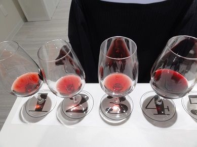 技術部主催テイスティングセミナーをボクのライフワークにするつもりです。それ位、気合を入れて臨みます。シニアクラスは東京会場のみ。故に、全国から参加者がいると。なんか、沖縄からって単語が、ちらっと聞こえてきました。マジですかね?-2018年上半期2回目のセミナー。講師は中本聡文先生です。時間厳守の先生です。時間前からアイテムが配られて、18時ちょうどに講義開始です。数分も無駄にしない姿勢でした。セミナーを振り返ってみて、今回重視されたのは、『酸とアルコールのボリューム感』でした。なんか、どこかで見た事無いですか?ボクは毎年、ここで見ています↓(http://koza.majime2.com/)『ちょっとまじめに~こーざ』です。テイスティングの基本なんだと改めて実感しました。そして、その基本が難しい。-今回の前半3種はいずれもピノとなると、何を見極めたいか?『産地』です。産地を見極めるために必要なのが、『酸とアルコールのボリューム感』なわけです。-量が少ないのも有りますが、1~3の色素量は少ない。見た目からピノっぽいですよね。そして、今回の収穫①この色調をなんと表現するか?色素量が少ないと表現しましたが、それだと、マイナスのイメージ。『明るい』が良さそうです。『明るいルビー』今後、そう表現します。自分の答えは1:ACブル(仏)2:パストゥグラン(ガメイ中心)3:カリピノ(新世界系ピノ)そんな予想でした。2のガメイですが、ボク自身のコメントは『シンプル』中本先生からは注意を受けました。『シンプル』はdisり言葉。テイスティングを極めるには、ACブル~村名までをしっかり飲んでおくことが重要な気がしました。答えは↓1:オレゴン2:メルキュレイ3:NZでした。中本先生の解説を聞いた限り、1のオレゴンはブルピノにかなり近いようです。アルコール度数13%新世界にしてはエレガント系中本先生曰く、歴史的に『新世界』で一番古いピノの産地がオレゴンとのこと。だから、多様性があり、ブルピノっぽいピノもあるだろうと。確かにそうかもですね。2のメルキュレイは、新世界的要素が皆無で、シンプル過ぎると感じ、また、果実味がイチゴっぽくて、ピノではなくガメイとしました。でも、自分がシンプルと感じても、コメントとしては『複雑性』を見つけてあげないといけないみたい。3は明らかに新世界。理由は果実味の豊富さ、粘性が高くアルコール度高め、、酸が抑え目。じゃあどこなのか?後から思い返せばカリフォルニアはもう少し押しが強い?-三つを比べてみると違いを掴むのは、・酸の多さ・アルコールのボリューム感の様です。1と2は酸がしっかり有ります。3はアルコール感多いです。1と2は線が細い。3は骨太。故に産地として、1と2はフランス3がカリフォルニアとしました。当たらずしも遠からずでした、---ボクのブラインドの正解の導き方はそろそろ限界の様です。『過去の記憶と比較』そうではなくて、ワインの各要素から、日照量、気温、標高、土壌、といったいわゆるテロワール的情報と、MLF、樽、全房発酵といったワイン造りの情報を合わせて、『産地を寄せていく』そういう『過程』を学びました。これ、凄くレベル高い事で、仕事に例えるなら、・マニュアルの丸暗記VS・根本の理解という違いが有ります。やはり、根本の理解を目指したい。丸暗記では多様性に対応できない。そんな事を学んできました。・生き甲斐色々有りますが、ボクはWSET受験を検討し始めています。来年以降から本格的に始めたい。その為には『英語』をやらないと…。ボクは日本人で、「英語なんて」という意識でいました。留学するわけでもないし、海外旅行も今は興味が無い。だけれども、WSETの上位試験は、講義が英語です。試験のために英語を学ぶ、なんとも、ボクらしい動機です。これをボクの生きがいにしていこうそんな事を最近真面目に考えています。