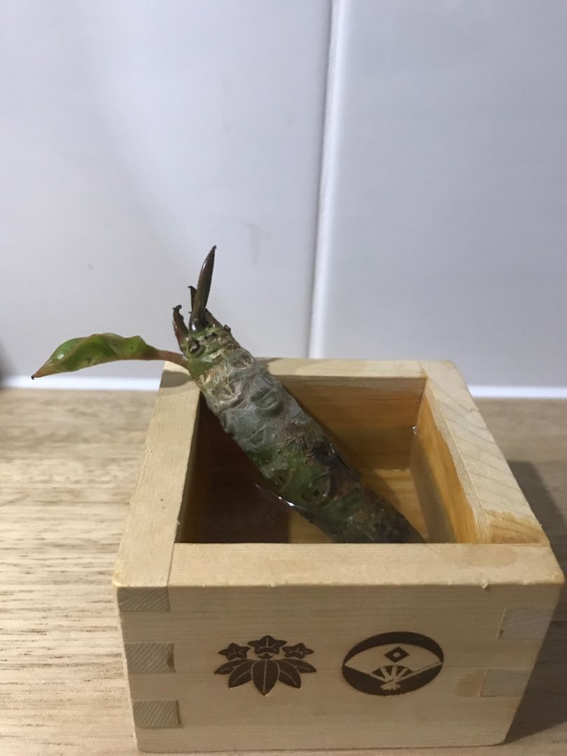 家の工事の関係で大事なフランジパニ(ハワイではプルメリアって言いますね)を剪定せざるを得なかったので、挿木に挑戦しようと思ってます。 植木鉢にもいっぱい挿木したのですが、このちびちゃんは水で根っこ出ないかなってチャレンジしてみたら… まだ水に挿して5時間も経っていないのに なんと!もう根っこみたいなのが出てきた! 生命力強すぎ!良くハワイのお土産屋さんで枝だけぶった切ったのを売っているのを見ては、こんなん生えるのかな?って思ってましたが、これは納得。 これからの成長が楽しみです。