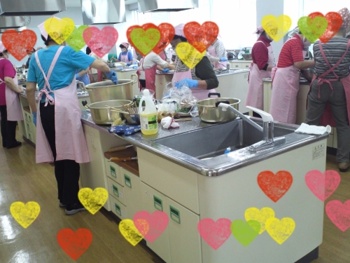 小雪のちらつく寒い一日でしたが、西豊永は寒さを吹き飛ばすヘルスメイトパワー全開です西豊永地区で生活習慣病予防食の伝達講習会を開きました。 メニューは先回学んだ、きのこのカレー、白菜サラダ、ゴマプリンです。 メイトさんの説明を聞いた後、さっそく調理に取り掛かります。 ピンクのエプロンも颯爽とメイトさんたちも参加。会話も弾み、みんなで楽しく調理。 小一時間でお料理完成 たくさんの人が呼びかけにこたえて参加してくれました。 参加した地区の方々と感想や改善点などを話し合いながらの楽しい試食。生活習慣病食のメニューを学んでもらい、ご家族の健康に役立てていただければ嬉しいですね。 片付けの後、みんなで記念写真をパチリ皆さん、いいお顔です ヘルスメイトは大豊町の人たちが良い食生活を身に着けて健康を維持できるよう日々活動しています。 おいしく食べて、ばっちり健康そうありたいですね。 今日参加してくださった地区のみなさん、ありがとうございました。これからもよろしくお願いします