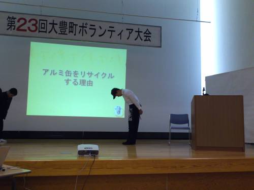 2月23日、大豊町ボランティア連絡会主催のボランティア大会開催。福祉とボランティアを子供から年配者までがともに学ぶいい機会です。 「できることの限られたこの過疎化の地域で23周年を迎えたボランティア活動。あれこれしたいという思いはあっても、もうできん。でも、できんことを嘆くのではなく、今できることを精一杯やっていきたいと思うちょります。」という会長さんの開会のあいさつに大きくうなずきました。今できることをする、これが大事ですよね。 大豊町中学校のボランティア学習の体験発表。地域の駅の清掃、アルミ缶を集めて車いすに交換、寄贈、老人ホーム訪問の様子など、スライドを通して知ることが出来ました。 アルミ缶のリサイクル講座は寸劇を交えての楽しくわかりやすい発表でした。商店主さんがアルミ缶製造にかかる電気代などを説明。リサイクルの大切さを訴えます。アルミ缶800kgで、一台の車椅子と交換できるそうですたくさんのアルミ缶が必要なのですね。1983年のセイヤングという番組でさだまさしさんの呼びかけがきっかけでこの運動を始めたのだとか・・・。締めくくりに地域の皆さんに協力のお願いです私もがんばってビール飲んで協力しようかなっと過疎化の進む大豊町での若い皆さんの活動に感動です。これからもがんばってくださいね。 さて、楽しみはお昼のご飯。ボランティア会員さんの手作りちらしずしと温かいトン汁。どちらも具だくさんで栄養満点大根の佃煮なんて珍しいものが添えられていました。 思いがけない朝からの雪にもかかわらず、たくさんの人が来ていたのもびっくり大豊町の町民の方のボランティアに対する関心の高さがわかる一日でした。