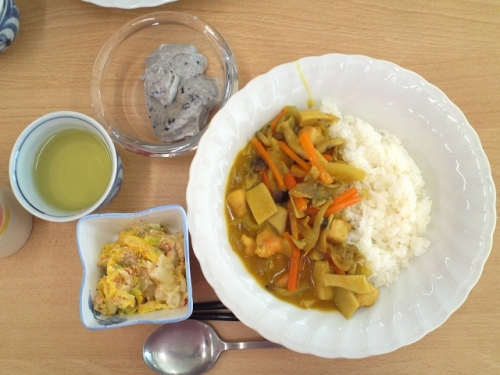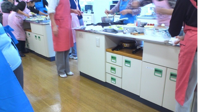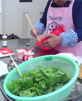 今日のヘルスメイト推進教室のテーマは乳製品と大豆。 メニューはパプリカの赤がきいてる、彩りちらし。 ヨーグルト味噌に柚子こしょうがピリリと味をひきしめて、意外にいけます、豚しゃぶヨーグルト味噌ソースがけ。 大豆は高たんぱく、低カロリーで栄養満点。 大豆と銀不老の和風カレー。大豊町の特産品銀不老と大豆を使い、鰹だしの、ひじきも入った栄養満点の和風カレー。 デザートは豆乳と生クリームの豆乳ブラマンジェ、ラズベリーソースがけ。 さあ、みなさん調理開始!! 手際よく盛り付け。 そして・・・。 出来上がったらみんなで試食会。 完成品です。おいしそう! 大豆食品といえばお豆腐だけど、捨ててしまうおからに大豆の栄養素の大部分があるそうです。なので、丸ごと大豆が理想なのです。大豆煮物、納豆、黄粉。これらが丸ごと大豆を食べることが出来るのですって。でも、お豆腐は夏でも冬でもおいしいですよね。納豆も時々食べて、ふりかけの代わりに黄粉も使って丸ごと大豆も心がけましょうと思いました。 畑の野菜、大豆。本当にすぐれものです!