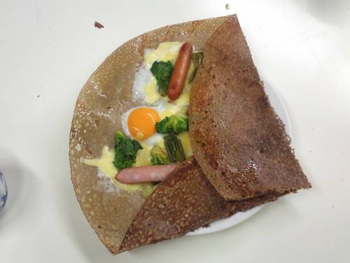 ここ高知県大豊町は本山町、土佐町、大川村とともに嶺北地域に含まれています。大豊にも立川ソバというのがありますが、嶺北地区はソバの産地です。それを生かすことが出来ればと、れいほく田舎暮らしネットワークのNPO主催でガレット作りの講習会が開かれました。 ガレットとはフランスの田舎料理でお好み焼きやピザといった位置づけの食べ物で、100%そば粉の生地をクレープのように薄く焼いて、いろいろな具材をのせて、食べます。実は私はこの日初めて食べました。ガレットという名前は知っていましたが、見るのも、食べるのも、もちろん作るのも初めて。嶺北の生産物で賄えるというので、ちょっと関心をもった次第です。 そば粉と塩とお水だけの、とてもシンプルな生地です。手で混ぜて生地に空気を入れていきます。リズミカルにボールを回しながら叩くように混ぜていきます。先生のを見ていると簡単そう「さて、わたしも」と腕まくりをして挑戦してみる参加者さん、これが手にまとわりついてなかなか・・・ 生地ができると、専用の鉄板で薄く焼いていきます。 講習会に参加した生徒さんが、焼いています。 こちらは先生作。さすがですこんなにきれいに焼けるようになるまでは修業が必要ですね。 のせる具材はいろいろ。嶺北産土佐ジローの卵、地元で採れたケールやホウレンソウ、ハムやソーセージなどもOKこちらは生野菜をのせてドレッシングをかけ、サラダ風 果物をのせるとデザートにもなります。アツアツで生地がパリッとしていて、ほんと、おいしい はるばる東京から先生が来てくださいました。渋谷でガレット専門店を経営している方です。参加者さんとともにパチリ左が先生です。若くてバイタリティー、その上かわいい。笑顔がとても素敵な方です ガレットを嶺北の特産品にしては、との動きもあるようです。 それはともかく、おいしくて楽しいひと時でした。 主催してくださった方々、夜おそくまでお疲れ様でした。 嶺北でも食べられるようになるといいな