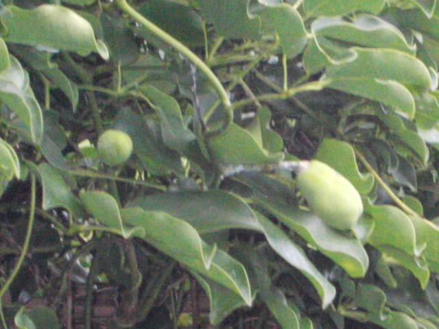 フェンスに絡まっているアケビによく似た郁子(むべ)のツル。 秋になったら実をつけるのかなと何気に眺めていると、まだ青く小さな実を見つけました。 このあたりでは長命寿という名前がついています。 たくさんなっています。 11月ごろになると暗紫色に熟します。アケビと違って、裂けない。若いツルはお浸しにして食べることができるそうですが、まだ試したことはありません。 春は若いツルが、秋にはほんのり甘い実が食せるなんて、自然の恵みは無駄がなく、そしてなんて粋なのでしょう。秋が楽しみおまけの写真はトケイソウ。 何時を指しているように見えるでしょうか? 私はいつも3時のおやつの時間だといいなと思ってみています。