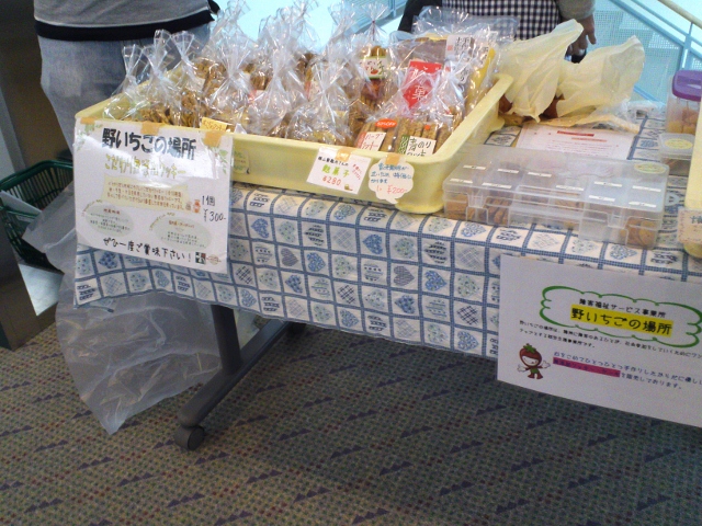 今日は嶺北地区の福祉のイベントがありました。私は仕事だったので、お昼休みにちらっと覗くことしかできませんでた。野いちごさんはおいしそうなクッキーを出品。彩もきれいでした。 おいしいパンを作っているどんぐりの里。シナモンパンが私のお気に入り。今日も買いました。いい香りのするポップコーン!お兄さんの笑顔と100円というお値段に惹かれて買ってしまいました。おいしかった。なんか映画を見に行きたくなりましたよ。 午後からが本格的なイベントだったようで、ぜんざいや、焼き芋屋さんもあったそうです。 嶺北地区とは高知県の大川村、土佐町、本山町、大豊町の4か町村で構成されています。障害を持たれている方たちの活動も活発ですね。 仕事で参加できなかったのがちょっと残念でしたが、たくさんの方が来場されていたみたいでした。私も皆さんの笑顔とセールスぶりに元気をもらいました。