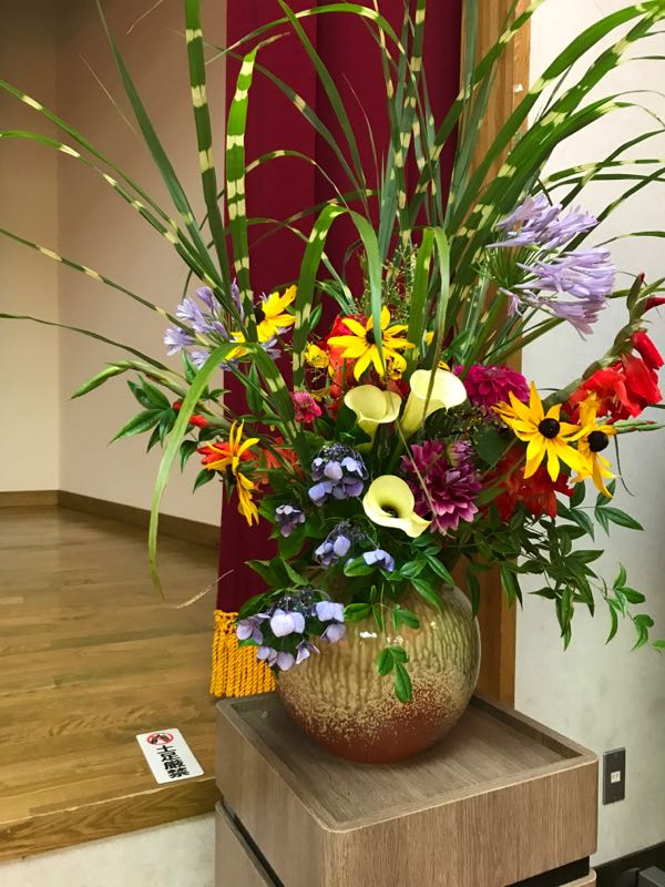 小雨のぱらつく大豊町。今日は町を上げての文化祭。老若男女、ホットでカルチャー!!! ピンクののぼりがお出迎え。 母が行きたいと言うので、準備して出発。大豊町ふれあいセンターに着くと朝から賑やかです。御餅や干物など入口で販売しています 午前中用事があったので、朝に母を連れて行って午後から見に行った私です。 入口を入ると、大きな生花がありました。なかなかの力作 健康チェックのコーナーがあったので、覗いてみると、血圧、血液のサラサラ度、骨密度、肺年齢の測定をしてくれました。私ですか? ふふふ バッチリ健康でした ロビーでは、婦人会のちらし寿司を販売中。たくさん売れたかな?私も昼食にいただきました。美味しかったです。 食といえばヘルスメイトさん。味噌汁の塩分チェックをしていました。普段食べている味噌汁を持っていくと塩分を測ってくれます。その上、美味しい味噌汁をご馳走に・・・鰹だしがよく効いていて、これなら塩分控えても美味しくいただけます。ヘルスメイトさん、グッジョブ さて、会場の中に入ってみると大豊町中学校吹奏楽部の演奏が始まっていました。今年はやっぱりこれでしょって感じで、あまちゃんオープニングテーマ。会場参加の紅葉、ふるさとの合唱でシメました。 若者に負けてはいられません。朗々と歌い上げる詩吟。なんか、かっこいいです。なんたって独り舞台ですものね。気持ち良さそう。 最後は土佐勤王党おもてなし隊のステージショー。イケメンズでめちゃかっこいい!紅一点の瓦版屋ちゃんもカワイイ武市半平太、岩崎弥太郎、坂本龍馬、中岡慎太郎、岡田以蔵。そうそうたる顔ぶれです。(岡田以蔵ってこんなにかっこよかったのか) 高知の駅の会場でパフォーマンスを繰り広げています。皆さん高知駅に行ったら是非立ち寄ってくださいね~。 頑張れ、土佐勤王党、おもてなし隊。応援しちゅうきね~。 こうして、午前の保育所の園児たちの歌から始まった大豊町文化祭は無事幕を閉じたのでした。 全部紹介できなかったけど、皆さん本当にハイクオリティーですごいです。 秋日に 文化花咲く 大豊町 皆さんおつかれさまでした。