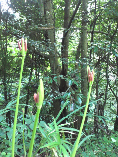 相変わらず、一日雨が降ったり、日が照ったりを繰り返している大豊町。湿度が高くて、「また梅雨か?」とつぶやいてしまいます。 それでも季節は移っています。暑さ寒さも彼岸まで。ご存じ彼岸花! つぼみが赤く色づいています。もう少し周りを探してみると咲いてた咲いてた! もうすぐ、山の斜面が彼岸花で埋め尽くされて真っ赤になります。 彼岸花は「葉見ず、花見ず」花が散ってから葉が生えてくるので、互いの姿を決して見ることはできないのです。なんだか決してかなうことのない悲恋を連想したりして、秋の夜長のセンチメンタル。 本当は有毒植物です。でも、昔は球根を何度もさらして毒を抜き食していたそうな。 彼の岸に咲く秋を告げる花です。
