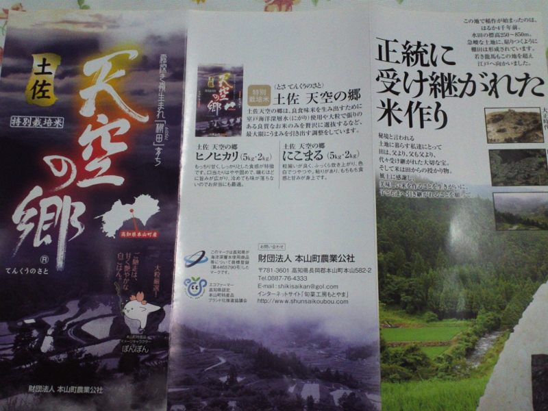 2010年、高知県長岡郡の嶺北のお米が日本一になりました。知ってはいたのですが、いまだ食すに至らず、今年こそは新米を入手するぞと心に決めておりました。 「にこまる」と「ヒノヒカリ」両方買って食べ比べてみましたよ。 ふっくらつややか、にこまる。 白く透明感あふれるヒノヒカリ。 甲乙つけがたく、どちらもおいしい!!! お米の粒も大きくて炊いたときの香りもよし。 山間部の棚田で採れたこのお米、生産者さんの苦労と努力がうかがわれます。 秋色に染まり始めた山々、冬はもうそこまで来ています。 サツマイモ、サトイモ、お米、収穫の秋を堪能しましょう。