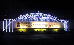 昨夜は、沖縄ハーバービューホテルのレストラン『ベルビュー』のクリスマス・ディナーに行って来ました。 入口には、きれいなイルミネーション。すっごくゴージャスでした。