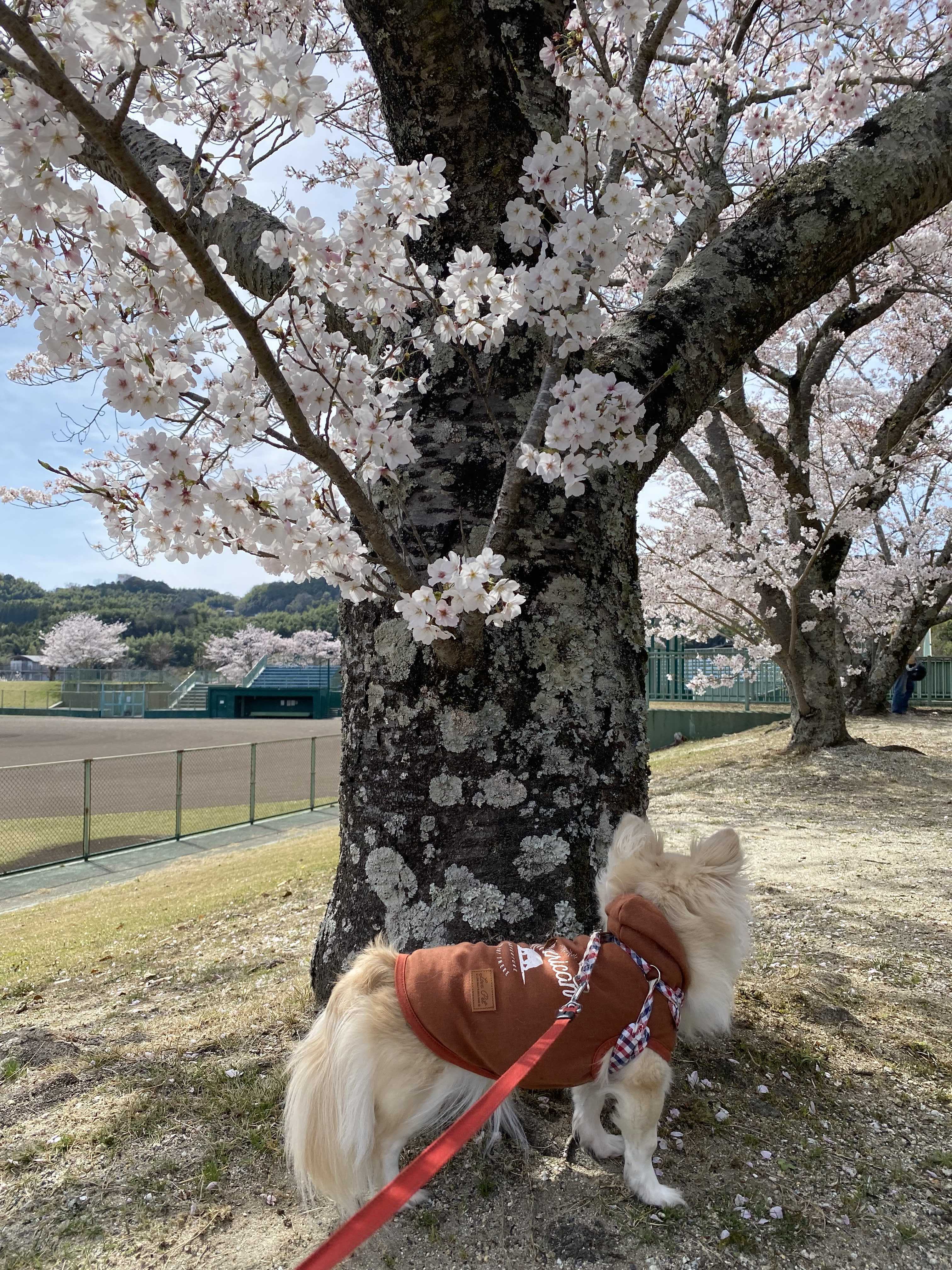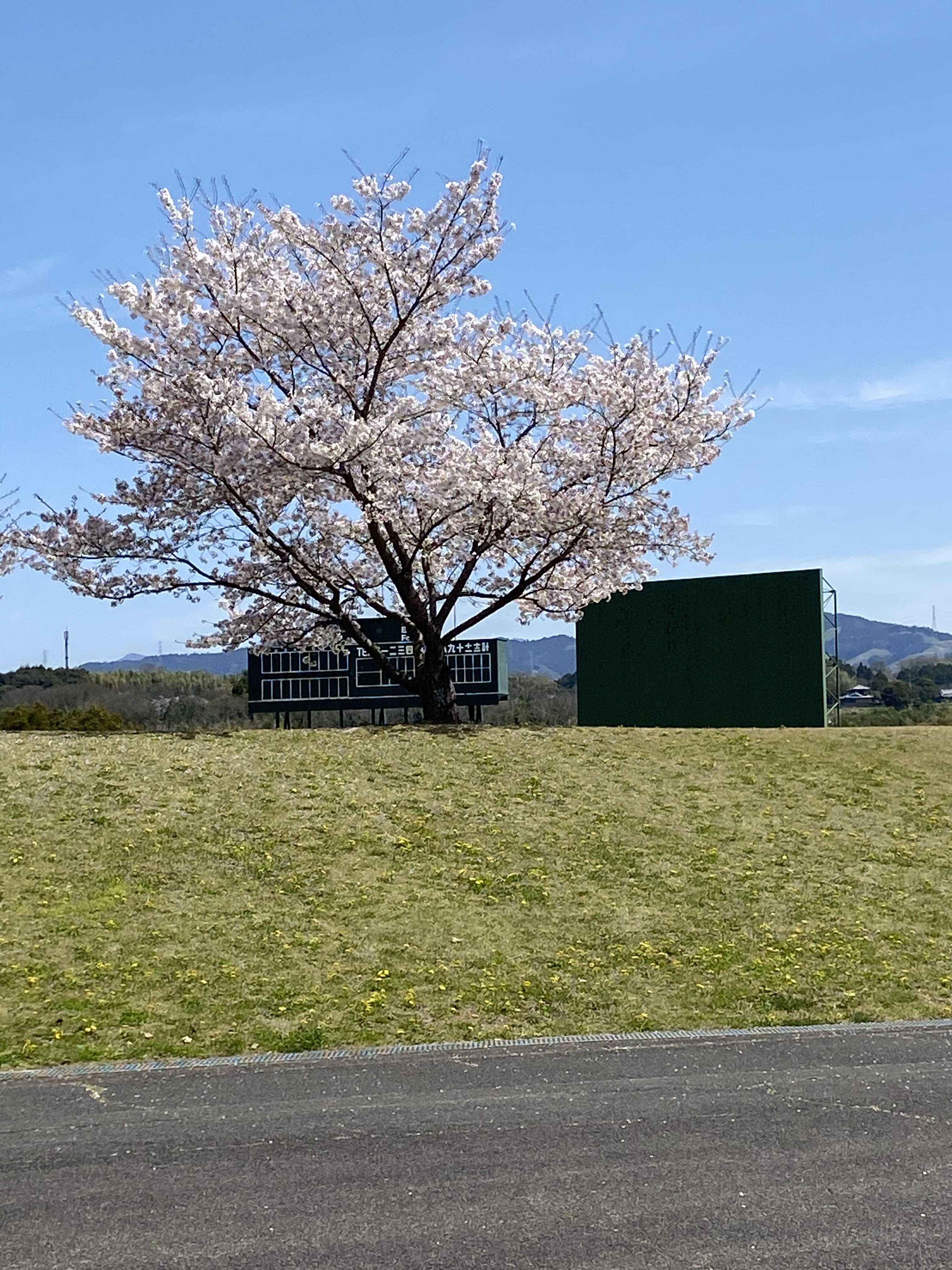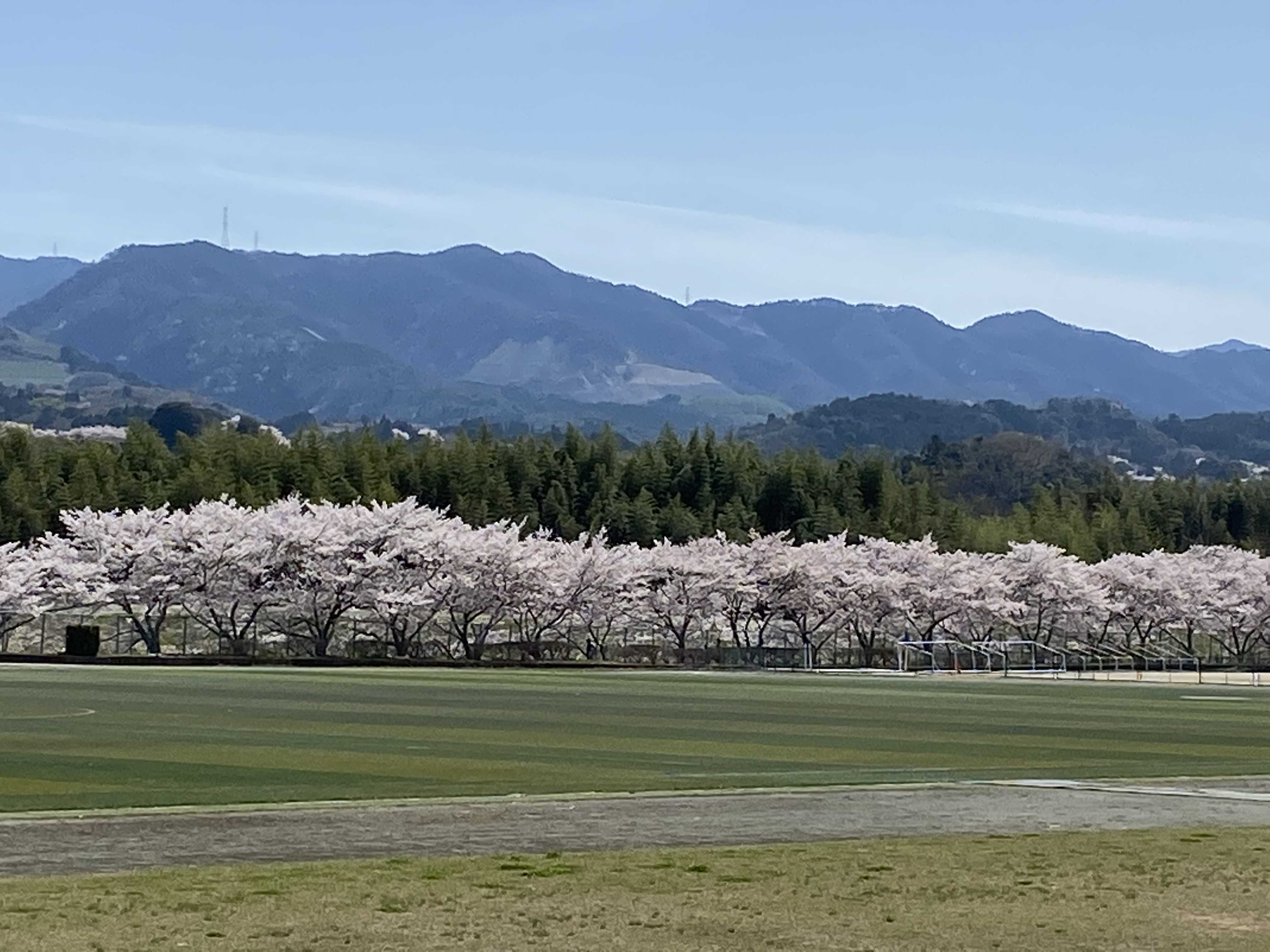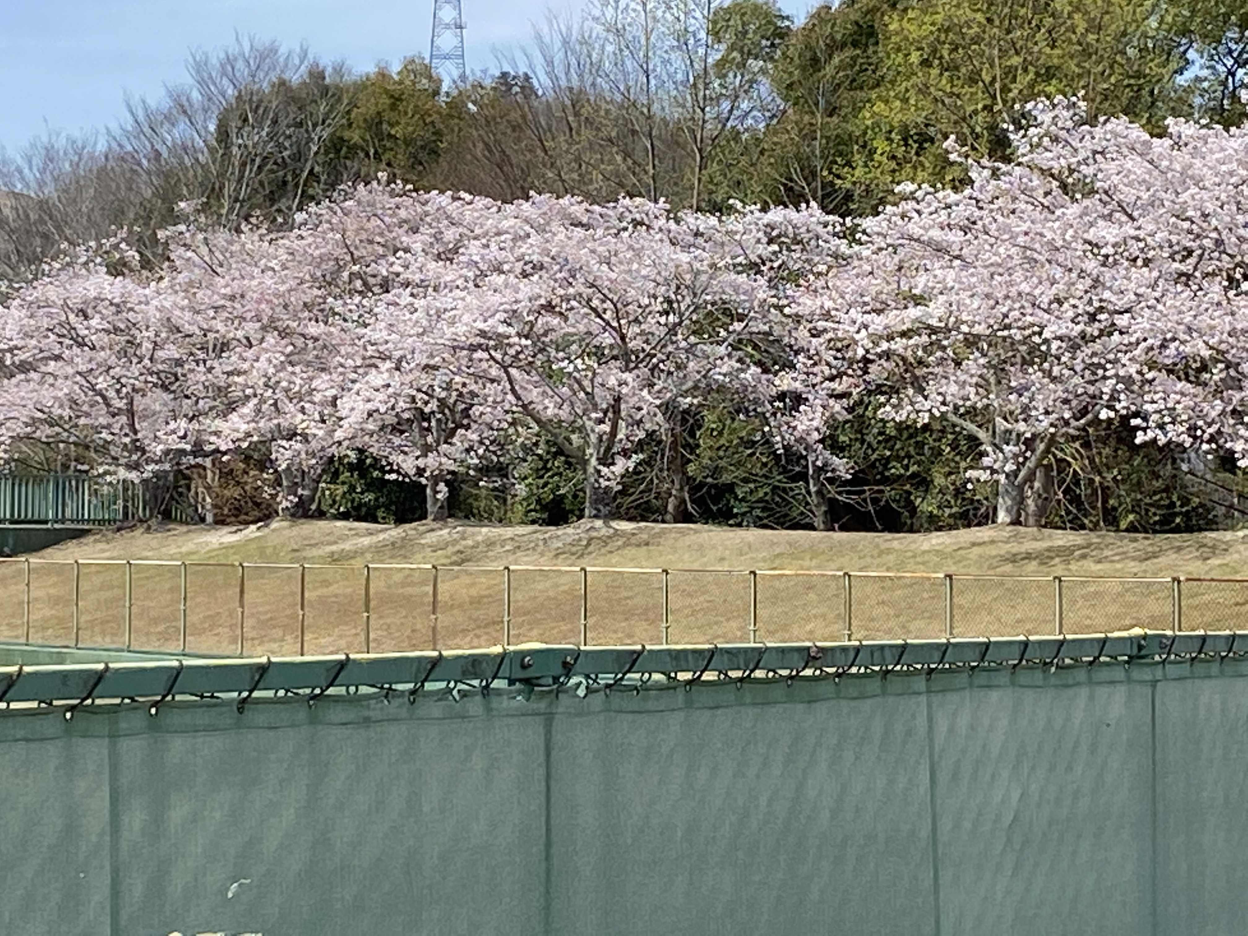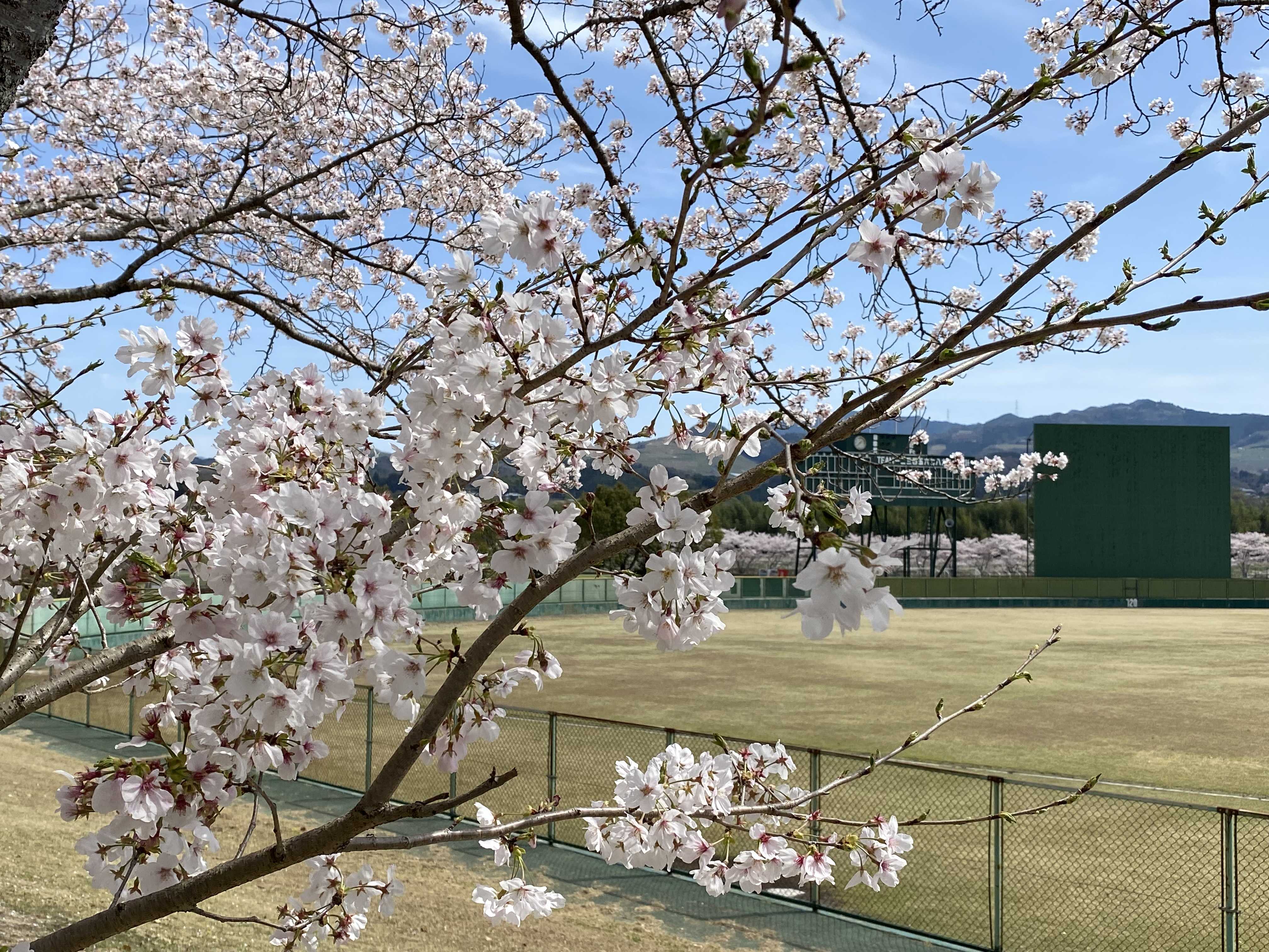 グランドの周りが桜並木で囲まれてます