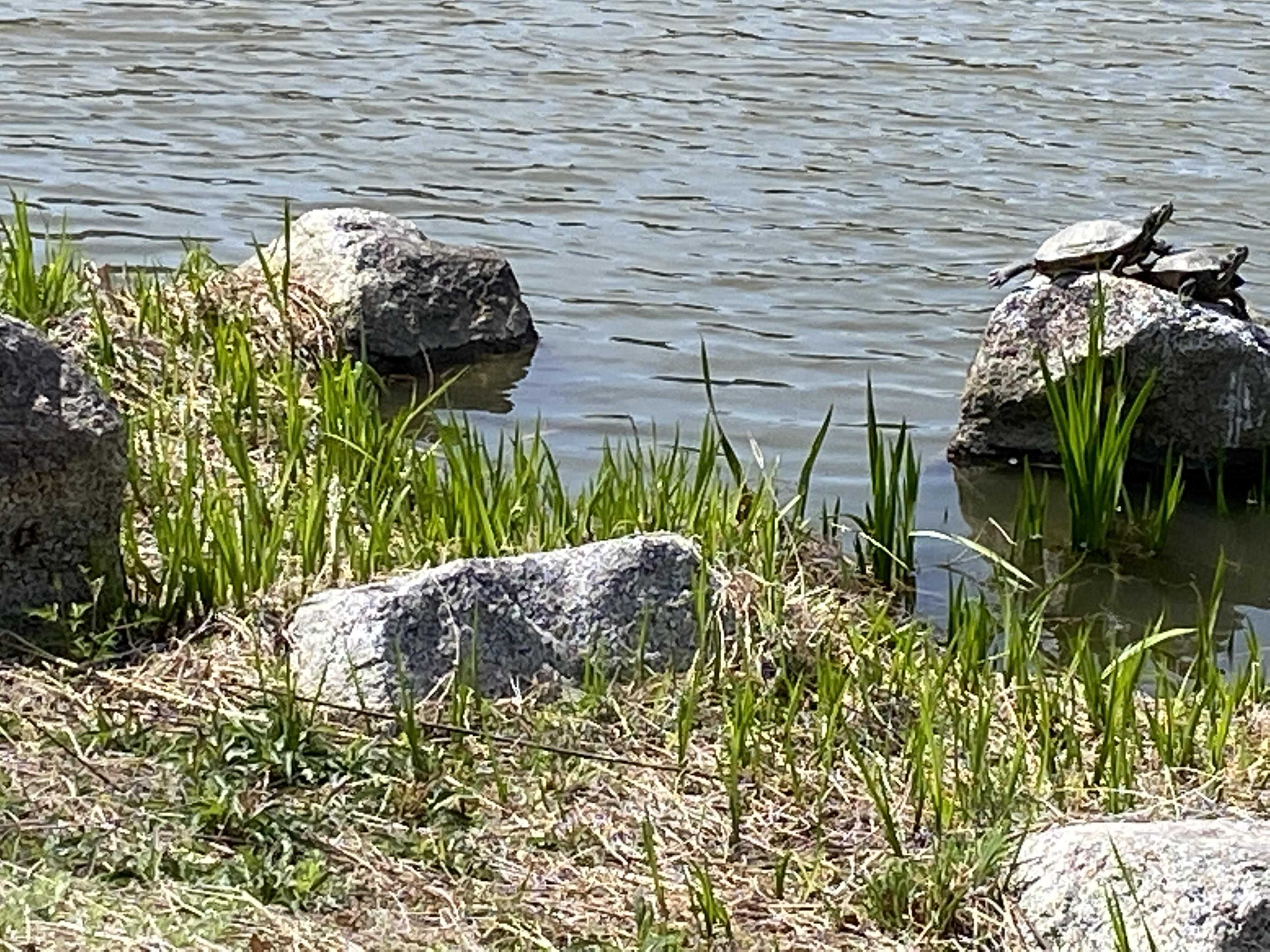 カメが日向ぼっこしてました