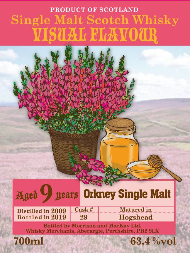 ヴィジュアルフレーバー ヘザーハニーが香る「オークニー 2009」★ヴィジュアルフレーバー ̄ ̄ ̄ ̄ ̄ ̄ ̄ ̄ ̄ ̄ ̄ ̄ヴィジュアルフレーバーはウイスキーのフレーバーを視覚でも分かりやすく表したシリーズです。ラベルには、そのウイスキーのキーとなるフレーバーが描かれ、味覚、視覚の両面からウイスキーがお楽しみいただけます。 オークニー シングルモルト 2009/ 63.4% 700ml 6780円(税込) オークニー シングルモルト 2009はオークニー諸島のメインランドにある蒸溜所のシングルモルトで、ホグスヘッドの9年熟成。この蒸溜所はフロアモルティングを行い、オークニーピートを使用していることで知られ、「北の巨人」とも称されています。このシングルカスクの持つ特徴的なフレーバーは「ヘザーハニー」です。色はイエロー。香りはヘザーハニーを主体に土っぽいピートスモーク、キャラメリゼしたクルミ、オレンジピールが立ち上がります。口に含むと、香り同様にヘザーハニーの優しい甘みがたっぷり広がり、後からビスケット、パイナップルの味わいが現れます。フィニッシュにかけて、穏やかなピートスモークとミルクチョコレートの味わいが加わります。この蒸溜所の特徴であるヘザーハニーのフレーバーをたっぷりと味わえる1本です。是非お楽しみください。(インポーター資料抜粋)