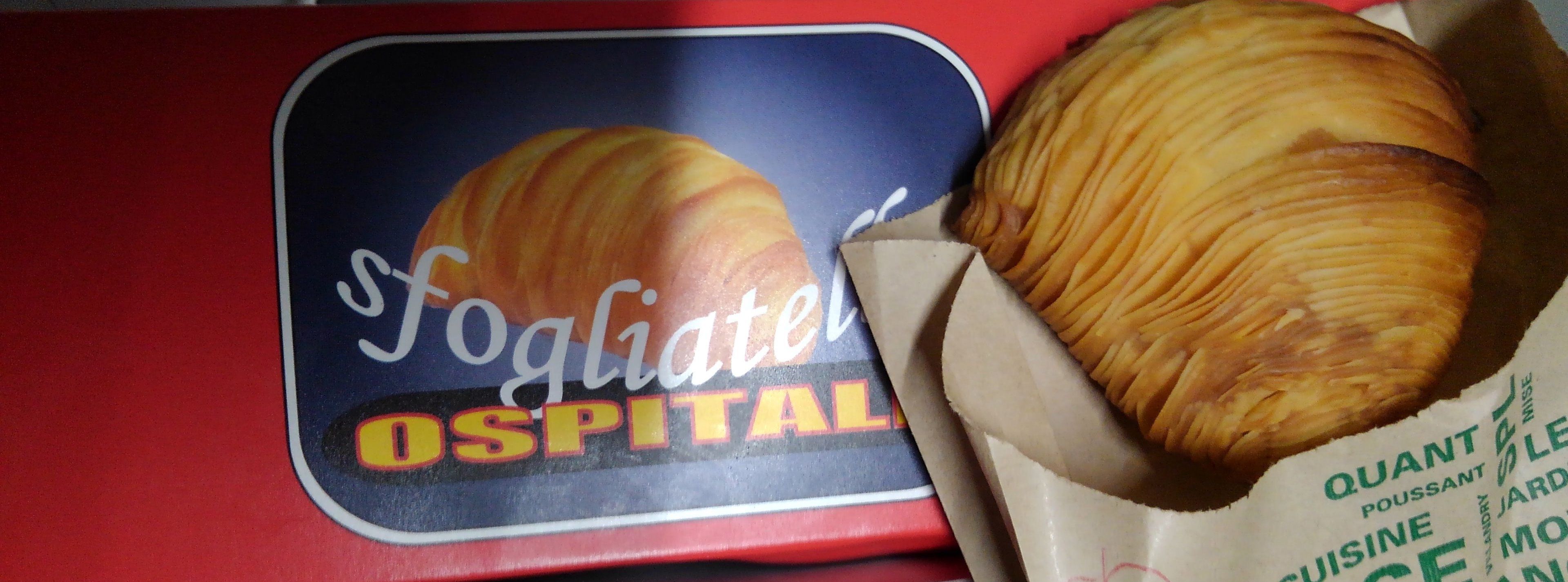 福岡を拠点に展開するナポリ伝統の菓子スフォリアテッラ大宮そごうで特設販売してたとの事でいただきましたパイ生地にバターを使用してないのでとてもパリパリの生地で中に色々な味わいのフレーバーがあるそうです何ともいえぬパリパリ感がたまりませんでしたネット販売もしてるそうですが検索したら間に合わず今は休止中でした