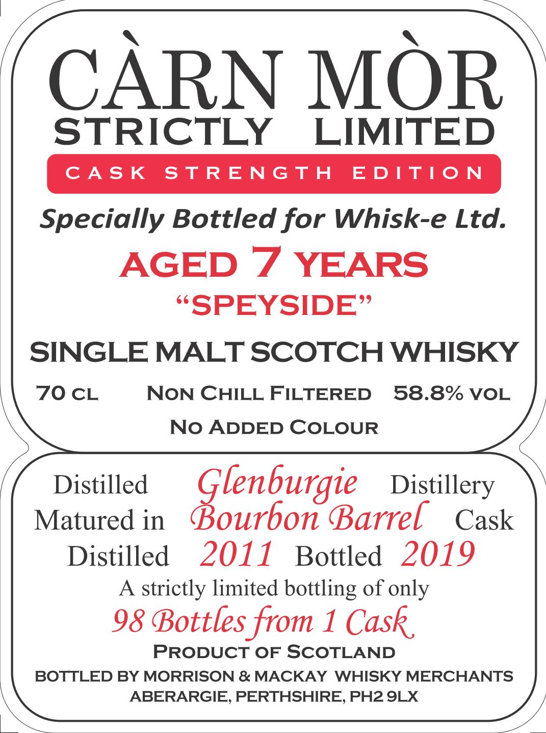 この価格で濃厚バニラ絶対買いおさえたいウィスキー!! カーンモア ストリクトリーリミテッド 日本向けシングルカスク 濃厚なバニラフレーバー「グレンバーギー2011」★モリソン&マッカイ ̄ ̄ ̄ ̄ ̄ ̄ ̄ ̄ ̄ ̄ ̄ ̄ ̄モリソン&マッカイは元モリソン・ボウモア取締役のブライアン・モリソンとキーパー・オブ・ザ・クエイクを受賞しているケニー・マッカイがスコットランドのパースシャーで創業したインディペンデントボトラーです。 カーンモア ストリクトリーリミテッドは通常46%加水タイプのシリーズで、個性がはっきりと表れた樽を選んでボトリングしています。今回は日本向けシングルカスクのためにカスクストレングスでボトリングしています。 グレンバーギー2011 / 58.8% 700ml 6200円(税込) グレンバーギー2011はバーボンバレルの7年熟成。日本向けにシングルカスク、カスクストレングスでボトリング。 色はイエロー。香りは焼きリンゴにバニラアイスクリームを添えたデザートのような甘いアロマが立ち上がります。口に含むと、まず蜂蜜のねっとりとした甘さとともにペッパーが弾け、次第にビスケットやトーストしたオークの香ばしさが加わります。フィニッシュにはバニラビーンズがたっぷり入ったカスタードシュークリームが現れます。7年熟成ながら、バーボン樽の特徴であるバニラのフレーバーをしっかりと味わえる1本です。