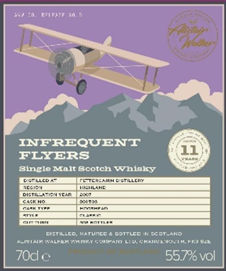 新ボトラー「アリスター・ウォーカー・ウイスキー・カンパニー」『インフリークエント・フライヤー』 ファーストリリース★アリスター・ウォーカー・ウイスキー・カンパニー ̄ ̄ ̄ ̄ ̄ ̄ ̄ ̄ ̄ ̄ ̄ ̄ ̄ ̄ ̄ ̄ ̄ ̄ ̄ ̄ ̄ ̄ ̄ ̄ ̄ ̄「アリスター・ウォーカー・ウイスキー・カンパニー」は2018年に創業したインディペンデントボトラーです。創業者のアリスター・ウォーカーは現在はグレンアラヒー蒸溜所を手掛けるビリー・ウォーカーの息子で、長きに渡りベンリアック蒸溜所で経験を積んだ実力派です。樽の選定や熟成に関する知識もちろんのこと、長いキャリアで培ったネットワークで多彩なボトリングを実現、今後が非常に注目されています。カスクストレングスのボトリングを世界でシェアしているため、ごく少量の入荷となっています。アリスターが自身のブランドのために選び抜いたファーストリリースです。彼の渾身のセレクトをどうぞお試しください。 フェッターケアン 2007 55.7% 700ml 7990円(税込)地域:ハイランド 香り:桃、トマト、麦、土っぽさ 味:キャラメル、バナナ、ピーカンナッツ、松 入荷数:42本 クロフテンギア2005 / 59.0% 700ml 10300円(税込)地域:ハイランド 香り:焦がし砂糖、デニッシュ、森林 味:シナモンロール、焼きリンゴ、バニラ、いりごま、バジル 入荷数:36本