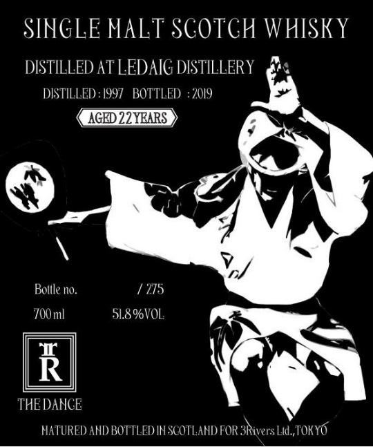~スリーリバーズオリジナル 「ザ・ダンス」 シリーズ 第29弾 リリース! レダイグ1997 22年熟成〜「ザ・ダンス」シリーズの第29弾、レダイグ蒸留所 1997 221年熟成をご紹介致します。今回もスコットランドよりサンプルを取り寄せ入念なテイスティングを行ない、樽を購入致しました。今までの「ザ・ダンス」シリーズは文字通り踊りをモチーフにしたカラフルなラベルデザインでリリースしてまいりましたが、ラベルデザインをマイナーチェンジし、踊りをイメージしたラベルですが、よりシックで大人のイメージになっております。今回は阿波踊りを踊る男性の姿をイラストにしました。このレダイグ1997 22年のラベルデザインは、20年以上熟成した骨太のスモーキーモルトが、男性が一心不乱に踊り続ける阿波踊りとマッチしており男の素朴さと力強さのイメージです。テイストはレモン柑橘やメンソールなど複雑な酸味とスモークがベストマッチです。昨今では20年オーバーのアイラモルトはなかなか入手困難です。アイラではありませんが熟成されたスモーキーモルトの逸品です。LEDAIG 1997 22yo 51.8% 70cl HOGSHEAD総数275本 27200円 テイスティングノート – 香りはスモーク、メンソール&レモン柑橘、スモークしたじゃがりこ、味はシャープで酸味あるスモーク、香ばしいトースト、レモンキャンディー、フィニッシュはホットでスモーク&ペッパーに心地よい酸味。