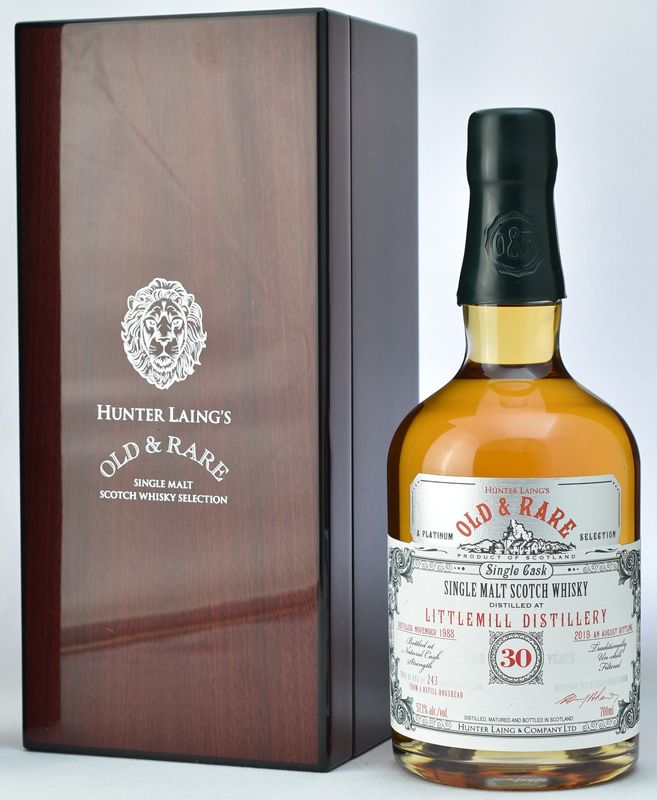 ハンターレインが次々と販売している「オールド&レア ヘリテージ」シリーズかつての旧デザインボトルを復刻させつつ、30年以上の長期熟成品のみをつめた実に稀少かつ気になるラインですが、今回通常ラインのレアアイテムが入荷しました。そのアイテムは閉鎖してずいぶん時間も経過、今や新規のリリースはほとんどなく、市場に出るボトルはことごとく高額となっているレア蒸留所「リトルミル」。243本が瓶詰めされましたが日本へはわずかに15本のみ。長熟品は存在自体が少ないのですが、その味わいはトップクラス。将来のリリース見込みもあまり期待できない優れものリトルミル 1988/30年 オールド&レア 57.1% ハンターレイン ¥111000(税込)美しい金色。パイナップルとハチミツの香りで始まり、バニラとほのかなチョコレートオレンジの香りが見事に混ざり合う。口に含むとフルーツの風味がさらに増し、パイナップル、オレンジ、リンゴの風味の奥で、たっぷりとしたキャラメルソースにブラウンシュガーをまぶしたような口当たりが楽しめる。フィニッシュは長く、甘く、ソフトで、満足感がある。失われたローランドモルトを示す素晴らしい一品。