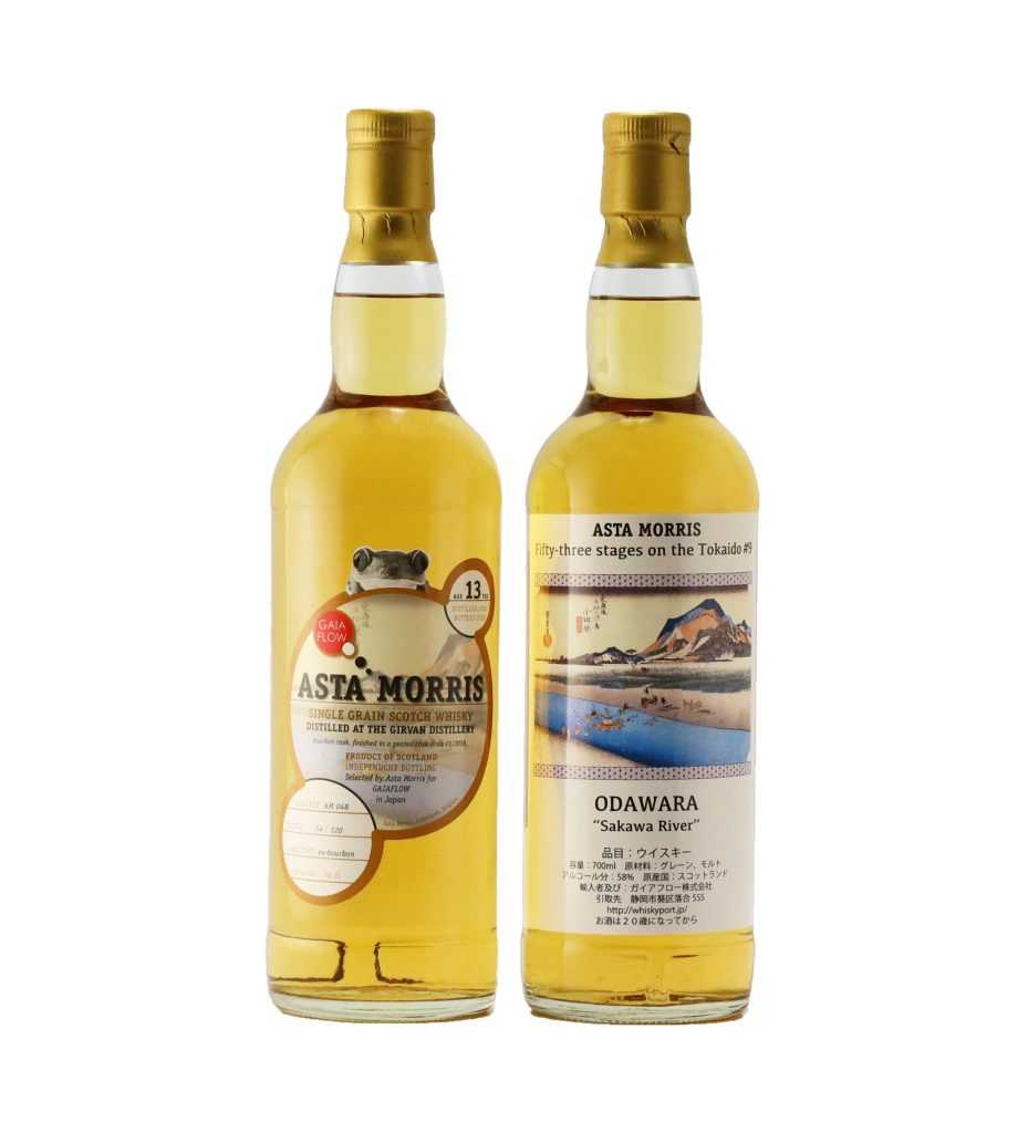 アスタモリス ーASTA MORRISガーヴァン 2006/2020 13年 「小田原」58度 700ML 8800円(税込)浮世絵ラベルが映える、東海道五十三次シリーズ。宿場ごとに様々な蒸溜所のウイスキーをボトリングしています。今回の宿場町は、「小田原(神奈川県小田原市)」。ラベルには、小田原宿に入る手前にある「酒匂川」を、多くの人々が渡っている様子が描かれています。 ボトリングされたのは、ガーヴァン。ローランド地方の西部に位置する、グレーンの蒸溜所です。グレーンは、ブレンデッドウイスキーの原酒として使用されることがほとんど。ガーヴァンも、通常は、グランツのグレーン原酒として使用されています。そのため、シングルカスクでのリリースは貴重なものとなります。 ミドルレンジの熟成で、シングルグレーンとしては短めの熟成。しかしながら、今回は樽使いに大きな特徴があります。 フィニッシュに使用したのは、アードモアの樽。アードモアは、ハイランド独特のピーティーさ、燻したような、辛みのある味わい。その樽でフィニッシュをかけることによって、単調になりがちなグレーンに新たな複雑さが生まれました。 カスタードのようななめらかさに、スパイス、バランスの取れたピートの味わいが広がります。 【テイスティングノート】香り:グレーン特有の香り。甘い洋梨とエステリーさ、かすかにバブルガム。バニラたっぷりのカスタードにスイートコーンの香り。少し燻した松ぼっくりや、落ち葉を思わせる香りが漂う。全体的になめらかな印象。 味わい:まさにスイートコーンやバニラを思わせる味わいに、ココナッツも感じられる。ポップコーンやバナナのような甘さも。かすかに胡椒やジンジャーのようなスパイス感、生い茂ったヒース。ピーティーな味わいはどんどん強まり、土や葉っぱ、軽い辛味も感じられる。 余韻:バタークッキー、スパイスやニスを感じる、程よい余韻。 (今日の小言)昨日は8時前から1年振りに鍼治療に行きその足で4カ月振りの歯の定期健診先生のお蔭でかなり歯は良い状態を保っていてあまり褒めない先生が褒めていただきましたやはり体も定期的にメンテナンスしてもらわないとダメですね~