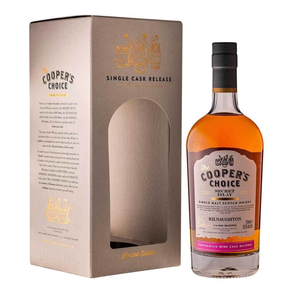 キルノートン シークレット・アイラ テンプラニーリョ・ワイン・カスク・マチュアード 56.5% 700ml 8300 円 (税込)説明シークレットアイラ、蒸留所非公開 珍しいテンプラリーニョ(赤ワイン)カスク。赤ワインとオーク樽の影響をバランクよく受けた力強いアイラモルト。 キルノートンとはアイラ島南部の湾の名前。 306本ボトリング【テイスティング ノート】 海草、ヨード、フェノールを感じる。硝煙、塩っぽさと共に強烈な燻香が広がる。ナッティーで甘く心地よい、ドライさと塩っぽさが残る。情報原産国: スコットランド地域: アイラブランド: ザ・クーパーズ・チョイスメーカー: ザ・ヴィンテージ・モルト・ウイスキー・カンパニーカスク: テンプラニーリョ・ワイン