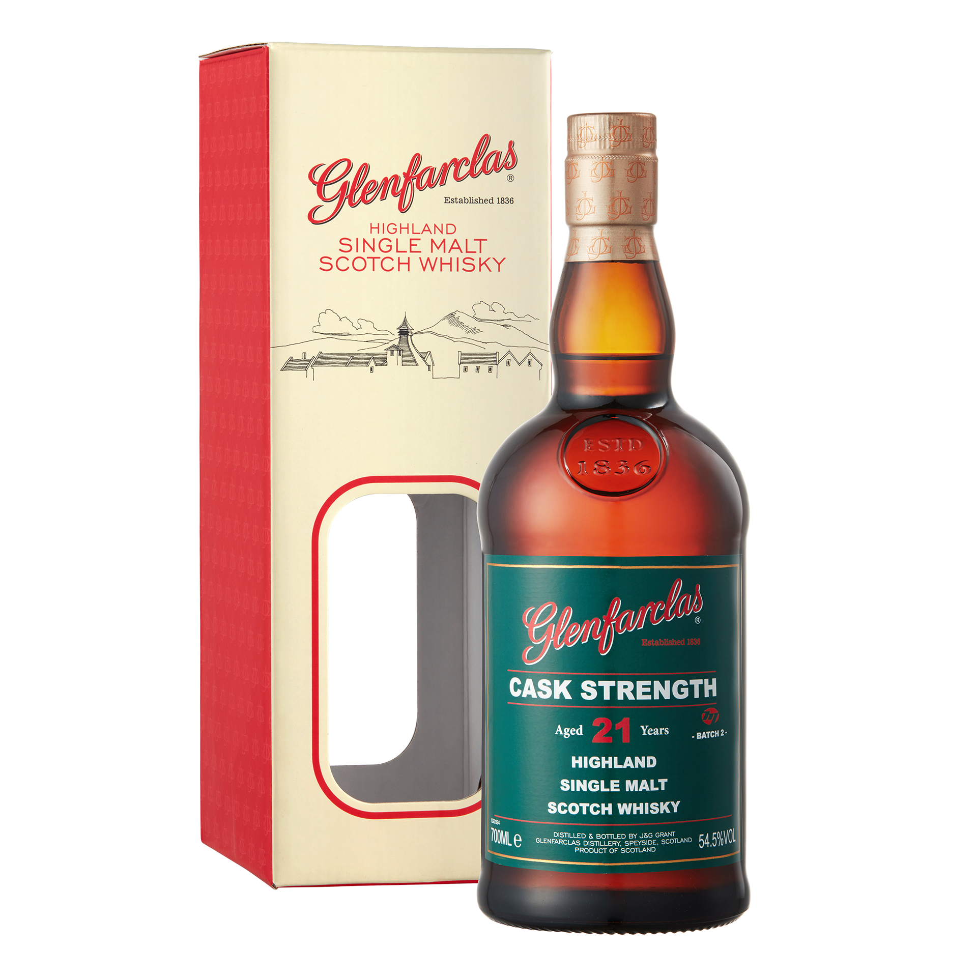 グレンファークラス21年 カスクストレングス 54,5度 700ML 16980円(税込)優美でじっとりした香り立ち。熟したオレンジやバルサミコの酸味。紅玉のコンポート、かりんとうやメイプルシロップの甘さ、金平糖、ジンジャー、メントール、松の実、少し湿り気の残っている干し草。モルティーで柔軟な口当たり。オレンジの酸味と甘味、バナナクレープ、百花蜜、ジンジャービア、主張しすぎないシェリー樽由来タンニンが心地よい。雨の後、新緑の森にが光が差し込むような清々しさと、どこか懐かしい年代物の家具を思わせる心地よさに癒を感じる。また加水によりフレッシュ感が現れ、新鮮なフルーツとの甘い蜜の香りが口の中に広がります。(インポーター資料抜粋)