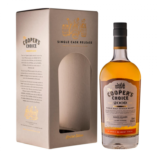 ザ・クーパーズ・チョイス グレンエルギン 2009 11年 サント・クロワ・デュ・モン・フィニッシュ 55% 700ml 9200円(税込)甘口白ワイン樽フィニッシュ。スペイサイドでは最もフローラルで香り高いモルト。ワイン樽のフレーバーとのバランスがとても良い。 サン・クロデュモンドとはボルドーの甘口白ワイン。 276本ボトリング【テイスティング ノート】あんず、オレンジの甘酸っぱい柑橘香。蜂蜜、トフィー、麦芽の甘さが広がりコクがある。ビターオレンジ、ほのかにスパイスが広がる。