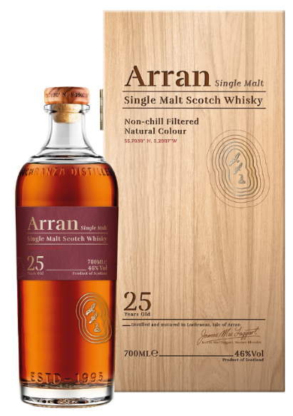 今リニューアル後ベンロマック同様定番品も出せば即完売の人気ぶりそんなアランからなんと25年物が初登場日本270本のみで魅力は価格の安さ絶対買いの1本(注)この商品に関します電話での問い合わせは御遠慮ください蒸溜所“初”の25年熟成! 限定商品「アランモルト25年」★アラン蒸溜所 ̄ ̄ ̄ ̄ ̄ ̄ ̄アラン蒸溜所は1995年にスコットランド・アラン島のロックランザ村に誕生した蒸溜所です。昨今世界各地で産声を上げているクラフト蒸溜所のパイオニアとして知られており、小型の4基(2対)の蒸溜器で丁寧に蒸溜を行っています。 アランモルト25年 / 46% 700ml 49980円(税込) 創業年にあたる1995年ヴィンテージのバーボン樽熟成原酒(65%)とシェリー樽熟成原酒(35%)を12ヵ月間シェリーホグスヘッドで追熟した25年熟成。総ボトリング数3,000本の限定商品で、日本へは270本のみの入荷です。 香りは焼いた完熟イチジク、サルタナ、甘く熟したブラックチェリーのアロマと共に豊かなオーク、ほんのりナツメグが感じられます。味わいはトーストしたアーモンドとシナモンを加えたフルーツケーキ。マンダリンやマヌカハニー、ブラウンシュガー、焼いたプリコット、ホワイトペッパーが絶妙に絡み合い膨らみのある味わいが広がります。フィニッシュにかけてダークチョコやダークフルーツのコンポートへと変化し、スパイスの効いたクリーミーな余韻が広がります。 25年という四半世紀に及ぶ長い年月をアラン蒸溜所と共に歩んだ残り僅かな1995年蒸溜の原酒のみを使用した希少なアランモルト。高級感溢れる木製BOXの特別仕様です。アランの25年の歴史が感じられる複雑で奥行きのある味わいをご堪能ください。 限定270本