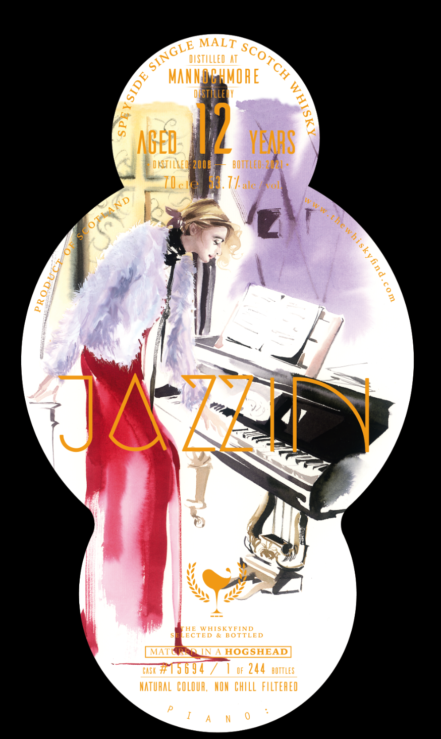 この度は、とても久しぶりになりますが、ウィスキーファインドからの新着商品のご案内させて頂きます。 今回は、ミドルレンジシリーズとして、毎回高評価を頂いております「JAZZ」から、 JAZZIN – Piano Mannochmore 12yo・Distilled: 2008 ・Bottled: 2021・Cask Type: Hogshead・Cask No.: 15694・度数:53.7%・本数:244 本・輸入:48 本・価格:16500円税込~概要~マノックモアはフローラルとフルーティーなスタイルで有名な蒸溜所です。その中でもこの樽は、非常に素晴らしいバランス、繊細なまろやかな口当たり、まるでフランス人女性のピアニストの様に、エレガントで成熟した味わいになっています。 ~テイスティングノート~Nose: アップル、フレッシュフラワー、メロン、ほのかにワクシー、若干のスモーキーさPalate: ネクター、アップル、丸みをおびたオイリーさFinish:エレガントかつ長い余韻、フローラルとフルーティーな香り、マイルドで丸みを帯びたアフターテイスト