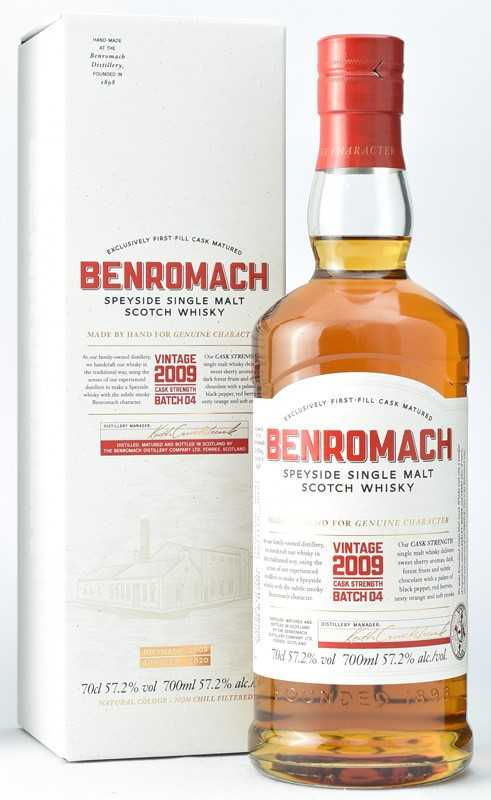 リニューアル後出せば即完売の人気蒸留所に大変身!!今、最も注目の蒸留所初回入荷はわずかに240本です。世界中で人気の注目蒸留所、ぜひお見逃しなく!スペイサイドにおいて近年熱い注目を浴びる蒸留所「ベンロマック」。昨年定番である「10年」「15年」がパッケージリニューアルとなり、さらに注目度が増しているようでそんな中届いた待望の新商品!旧レンジでも非常にファンの多かったカスクバージョンが新パッケージにて新たに登場となりました。定番ラインと同じくファーストフィルシェリー&ファーストフィルバーボンカスクによる熟成で、57.2%というハイプルーフでの瓶詰めです。ベースの味わいはそのままによりパワフルに濃厚になった飲み応え抜群の1本。ベンロマックファンなら見逃せないアイテムです。残念ながら240本限り、ぜひお早目に確保ください。<テイスティングノート>香り:クローブ、シナモンによって引き立つ豊かな果実香。甘いラズベリーがダークチョコレートのアロマを伴って広がっていく。味わい:シェリーにたっぷり浸したフルーツ、わずかなスモークがビターオレンジピールへ変化する。瑞々しいリンゴの風味がわずかな黒胡椒を伴って現れる。フィニッシュ:甘いスモークや赤い果実を感じるフルボディかつ長いフィニッシュ。ベンロマック カスクストレングス 2009 バッチ4容量:700ml 度数:57.2度 9350円(税込)