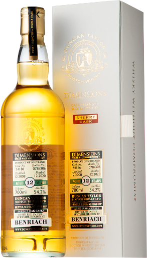 新入荷 ダイメンションズ「ベンリアック2008シェリーカスク」 「ダイメンションズ」は一世を風靡したピアレスコレクションの後継で、シングルモルトの様々な個性を柔軟に表現したダンカンテイラー社のメインシリーズです。 ベンリアック2008 シェリーカスク 54.2% 700ml 10980円(税込)ベンリアック2008シェリーカスクはシェリーホグスヘッドの12年熟成で、シングルカスクのカスクストレングスボトリング。香りは熟したリンゴ、ライム、マジパン、奥からゆっくりとレーズンを伴ったシェリーのアロマが現れます。味わいはサルタナレーズン、ジンジャー、シトラス。フィニッシュにかけてリコリスやレザーが加わり、ややドライに切れ上がります。熟成年数以上の豊かな味わいが楽しめる1本です。<限定120本>
