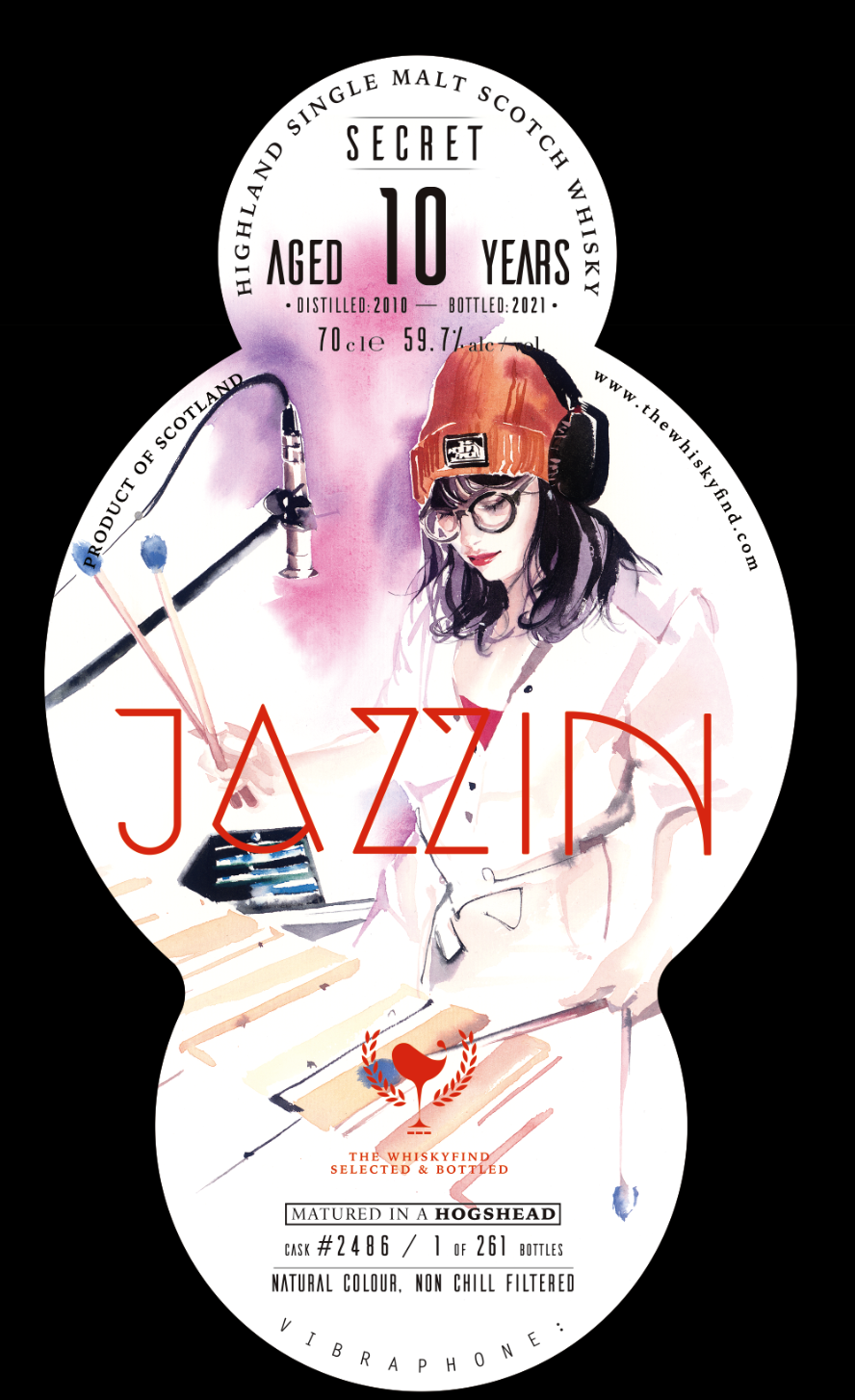この度は、とても久しぶりになりますが、ウィスキーファインドからの新着商品のご案内させて頂きます。 今回は、ミドルレンジシリーズとして、毎回高評価を頂いております「JAZZ」 JAZZIN – Vibraphone Secret Highland (Clynelish) 10年・Distilled: 2010 ・Bottled: 2021・Cask Type: Hogshead・Cask No.: 2486・度数:59.7%・本数:261本・輸入:54本・価格:16500円税込 売約済 ~概要~この若いクライヌリッシュは、愛らしい様なフルーティーなフレイバーと、ほのかにファンキーでワクシーなスタイルを併せ持つ、明るく清らかなイメージの樽です。まさに、創造性とエネルギーに溢れた、若き才能のあるビブラフォーン奏者を連想させました。 ~テイスティングノート~Nose: カラフルなフローラ、フルーティーなスタイル、メロン、ワクシーPalate::リッチなフルーツ感、塩バター、ヘーゼルナッツ、トースト、ワクシー、オイリーFinish:ヘーゼルナッツ、バニラシロップ、トフィー、オイリーな口当たり