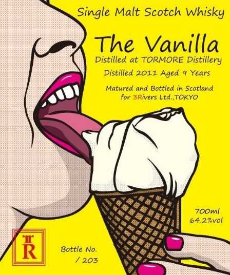 (注)非常に割当が厳しい超人気シリーズスリーリバーズ「バニラ」ですが当店の割当が1本のみですので分けようがないので次回の福箱の目玉に使わせていただきますので入手御希望の方は次回福箱に運をかけてみてはいかがでしょうか(以下インポーター資料抜粋)今までにリリースした「ザ・パフューム」や「ザ・ソープ」シリーズにつながる「ザ・バニラ」の第3弾、トーモア蒸留所の2011 9年熟成をご紹介いたします。この「ザ・バニラ」はウイスキーをテイスティングして感じたその味の特徴であるバニラやソフトクリームをイメージしてシリーズ名及びラベルデザインを考えました。「ザ・パフューム」や「ザ・ソープ」がウイスキーの香りの要素のひとつである香水や石鹸の香り及びテイストから名付けたシリーズであるように、今回のトーモア2011はバーボン樽熟成の特徴とも言えるバニラテイストがしっかり出ています。テイストは、バニラもですがフローラルなスミレの香りも綺麗に出ていて、バタースコッチやホットケーキのような甘さから、フィニッシュにかけて茶葉のタンニンへと展開していきます!ヤングモルトですがしっかりと飲み応えのある仕上がりとなっております。ラベルデザインはシリーズ名をそのまま表し、過去のリリースと同様にソフトクリームを舐める魅惑的な女性を描きました。他のモルトと同じ大麦と水を原料に、同じ製法で作られるウイスキーがどうしてこんな特異な個性を生み出すのか、そんなウイスキーの神秘に思いをはせながら飲んでみてください。TORMORE 2011 9yo 70cl 64.2% BOURBON BARREL総数 203本 テイスティングノート – 香りはバニラ、スミレ、バタースコッチ、厚めのホットケーキ、味は華やかなスミレ、生アーモンド、バタースコッチ、フィニッシュはクローブのビター、茶葉のタンニン。