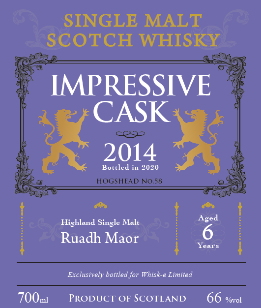 インプレッシブカスク『ルーアックモア2014』 80ppm超ヘビーピーテッドタイプのグレンタレット ★インプレッシブカスク ̄ ̄ ̄ ̄ ̄ ̄ ̄ ̄ ̄ ̄ ̄インプレッシブカスクは「印象的で感動を与えるウイスキー」をテーマとしたウィスク・イーのオリジナルシリーズです。 ルーアックモア2014 / 66.0% 700ml 6980円(税込) ルーアックモア2014は、グレンタレット蒸溜所のヘビーピーテッド麦芽(フェノール値80ppm)を使用したシングルモルトで、ホグスヘッドの6年熟成です。66.0%という非常にアルコール度数の高いシングルカスクをカスクストレングスでボトリング。色はペールゴールド。香りはポリッジ(麦粥)の柔らかな甘みと灰とタールが混ざったドライなスモーキーさが混ざり合い、遅れてバニラやレモンティが拡がります。口に含むと温かく、ブラックペッパーをかんだ時のようなインパクトと共に拡がるピートスモークの奥からハニーレモン、アプリコット、モルトの心地よい甘味が拡がります。 アイラ島の「アードベッグ」や「ポートシャーロット」とは異なるハイランドのヘビーなスモーキーテイストと、ハイアルコールならではの飲み応えが楽しめるシングルカスクです。超ヘビーピーテッド麦芽を使用したグレンタレット蒸溜所のシングルモルトは、リリース数が少なく、まだまだ珍しさもありますので、ぜひこの機会にお楽しみください。 ●限定329本