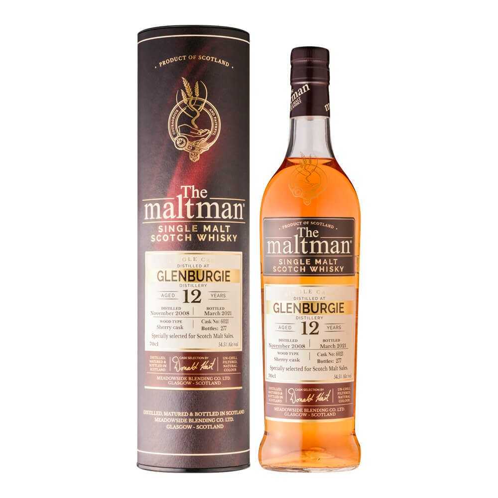 日本向けスペシャル限定ボトリング メドウサイド・ブレンディング社が、特別に推奨した良質な樽の中から そのクオリティーに自信を持って厳選した、柑橘系でフルーティーな円熟味のある シェリー樽熟成のグレンバギーを日本向けスペシャル限定ボトリング。 柑橘系フルーティーな円熟のシェリーカスク」ザ・モルトマン グレンバーギー 2008 12年 9200円(税込)蒸留年:2008熟成年:12年アルコール度数:54.5%容量:700ml【テイスティングコメント】洋ナシ、熟したリンゴのフルーティーさ。クリーミーでトフィー、ドライフルーツ、シェリーの心地よさ甘さが広がる。フィニッシュはドライでスパイスが残る。