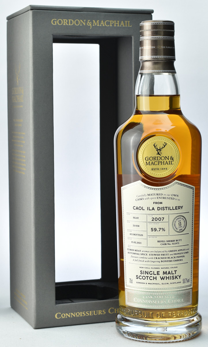 1895年創業、125年の歴史があり、シングルモルトの市場が誕生する前からシングルモルトをボトリングし販売していたパイオニアである老舗ゴードン&マクファイル(以下GM)社。 中でも旗艦シリーズとなるコニサーズチョイスには彼らも並々ならぬ力を注いでおり、その品質の高さは皆様もご承知の通りです。 さて、今回はシリーズでも比較的若めの熟成となるカリラが登場しました。 60度に届こうかというハイプルーフ品で、シェリー樽熟成のたっぷりとしたフルーツや蜂蜜の風味とあいまって、飲み応え、満足度共に十分の1本です。 611本と多めの生産ではありますが、日本市場へは200本以下の入荷これだけしっかりしたスペックのカリラ、少し手元で寝かせても楽しみ十分でしょう。 ここは1本といわず数本確保しておいても損はありません。ぜひお早目にご注文ください。 ◆カリラ 2007 13年 / ゴードン&マクファイル コニサーズチョイス カスクストレングス 容量:700ml 度数:59.7度 16500円(税込)
