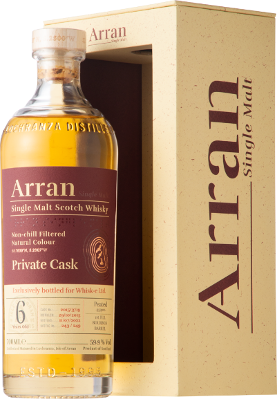大変申し訳ございませんが少量入荷の為ドリームボックス&量り売りのみの販売となります大変申し訳ございませんピーテッド麦芽(35ppm)を使用したシングルカスク 『アラン2015ピーテッド バーボンバレル』 ★ロックランザ蒸溜所(旧アラン蒸溜所)Isle of Arran Distillers社所有の蒸溜所で、1995年にスコットランド・アラン島のロックランザ村に誕生。昨今世界各地で産声を上げているクラフト蒸溜所のパイオニアとして知られており、小型の4基(2対)の蒸溜器で丁寧に蒸溜を行っています。 アラン2015ピーテッド バーボンバレル 59.9% 700ml 【限定:249本】 ファーストフィルバーボンバレルNo.3719 蒸溜:2015年10月29日 瓶詰:2022年7月11日 ピーテッド麦芽(フェノール値35ppm)を使用した、ファーストフィルバーボンバレルの6年熟成で、カスクストレングスボトリングの日本向けシングルカスクです。 色はライトゴールド。グラスに注ぐと穏やかなピートスモークが立ち昇ります。スモークのレイヤーの奥から黄桃、レモンといったフルーツやコムハニー、バニラの甘いアロマが広がり、香ばしいモルトがアクセントに加わります。口に含むとバニラの甘味が広がり、ペッパーやジンジャーといったスパイスがリズムよく弾け、ピートスモーク、クリーム入りのレモンケーキの味わいが広がります。フィニッシュに再びピートスモークが現れ、甘酸っぱいアプリコットが加わります。 既にロックランザ蒸溜所でのピーテッドタイプのウイスキーの生産は終了していますので、ぜひこの機会をお見逃しなく。(今日の小言)昨日また1件取引先の割烹屋さんが廃業の挨拶に来ましたが毎月のように古い取引先が高齢でコロナも落ち着きかけてもお客さんは戻らず馴染みの取引先の廃業が増えて寂しいかぎりです