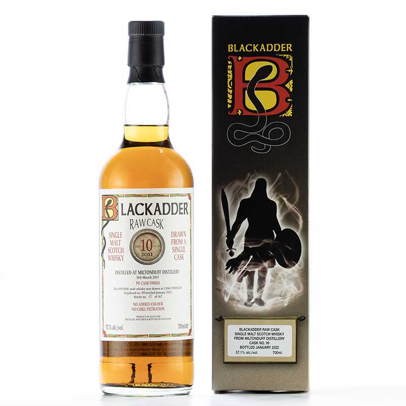 ブラックアダー ロウカスク ミルトンダフ 2011 10年 PX CASK FINISH No:99 57.1% 700ML 17226円(税込)スペイサイドのミルトンダフは、オフィシャルボトルのリリースがないにもかかわらず、根強いファンを持つ蒸溜所。バランタインのキーモルトとして知られており、フルーティさとしっかりとしたボディを両立させた銘酒です。 こちらは、ペドロヒメネス樽でフィニッシュ。 みずみずしいフルーツの甘さが、シェリーのヴェールにまろやかに包まれています。 飲みごたえのあるリッチな味わいは、加水してもバランスが崩れません。 潜んでいるフルーツのアロマを解き明かしたくなる、奥深い1本です。 【テイスティングノート】 香り:どっしりとしたシェリー、甘みのあるオーク。 味わい:シェリー由来のドライフルーツに、イチゴジャムが溶け合う。かすかにバター。柔らかくなめらかな舌触り。 余韻:心地よい甘さにオークが響き、長く続く。質の高いペドロヒメネス樽が持つ、ナッティなアクセントが後を引く。生産地域:スコットランド スペイサイド 蒸留所名:ミルトンダフ蒸留所 樽の種類:ペドロヒメネスフィニッシュ 蒸留時期:2011年3月9日 瓶詰時期:2022年1月 熟成年数:10年 瓶詰本数:167本 輸入本数:42本